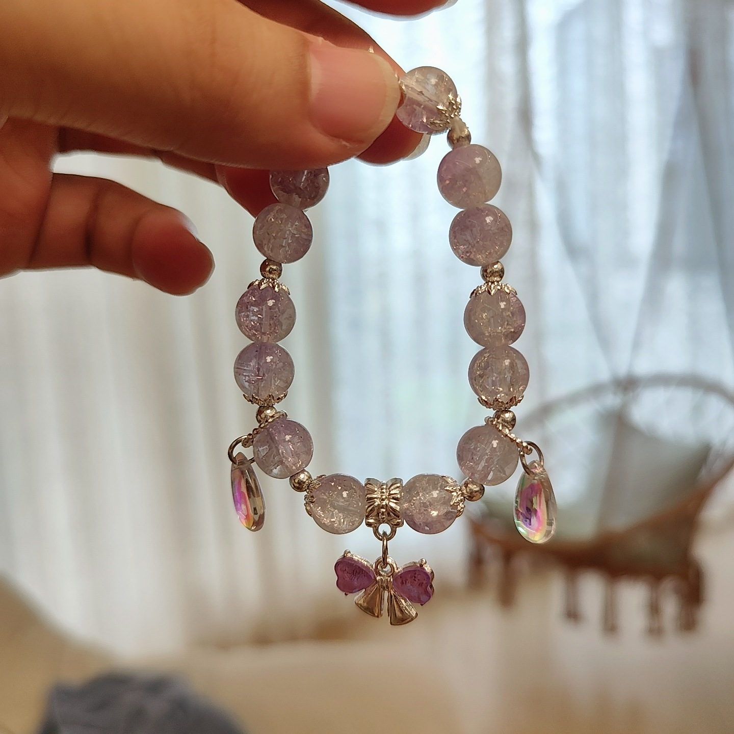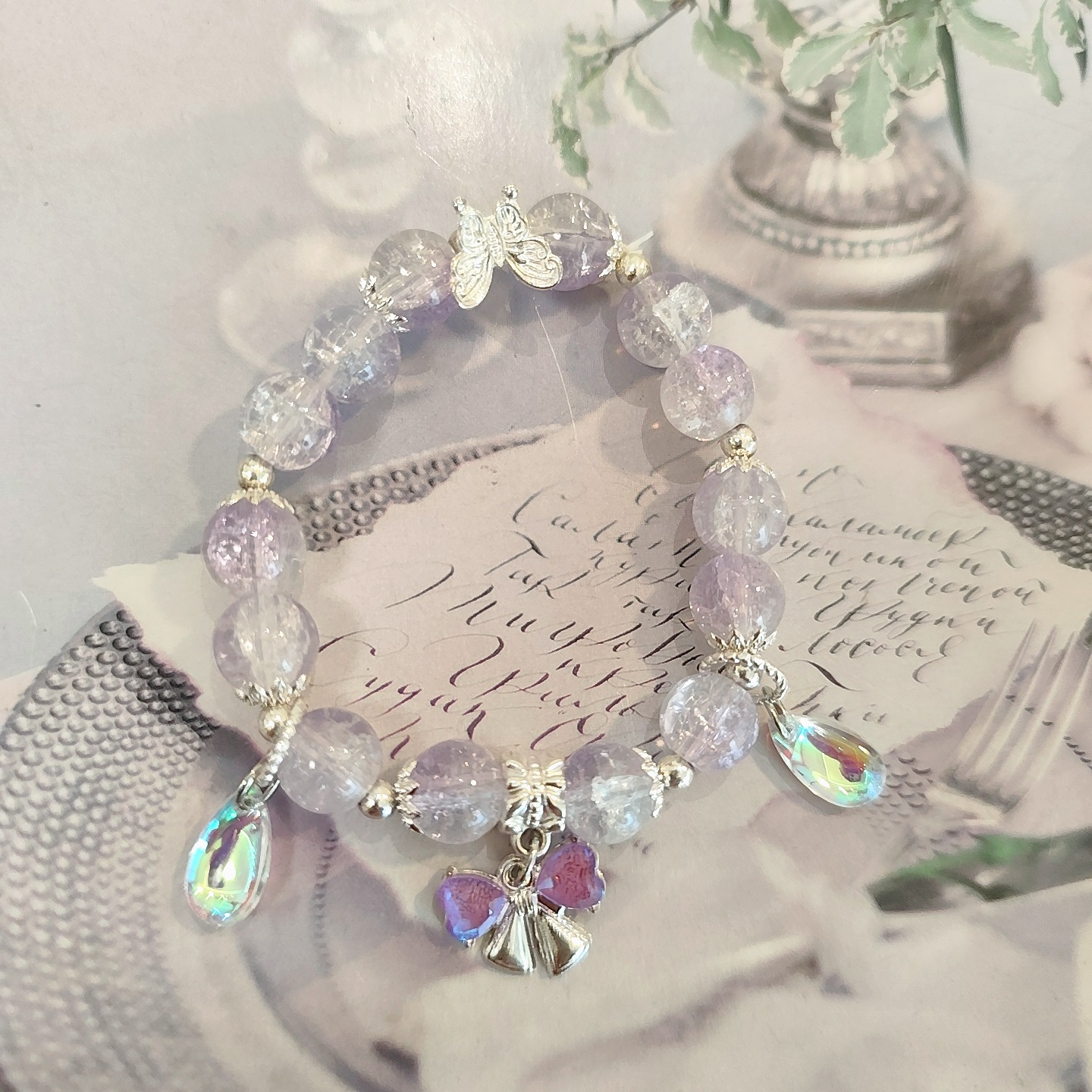 • S455 水晶AB彩蝴蝶结手链紫色