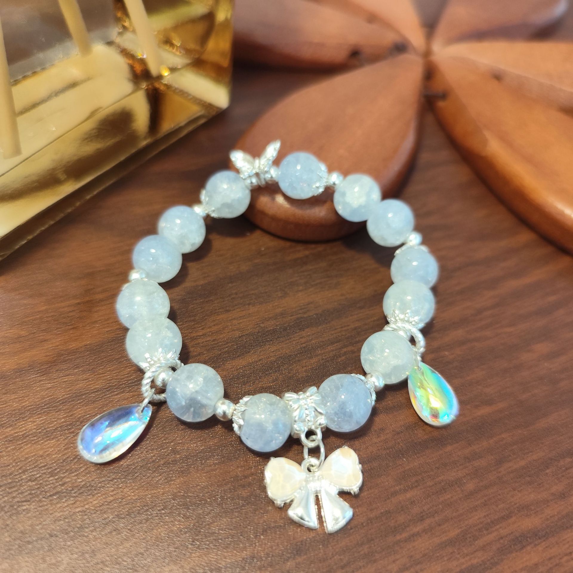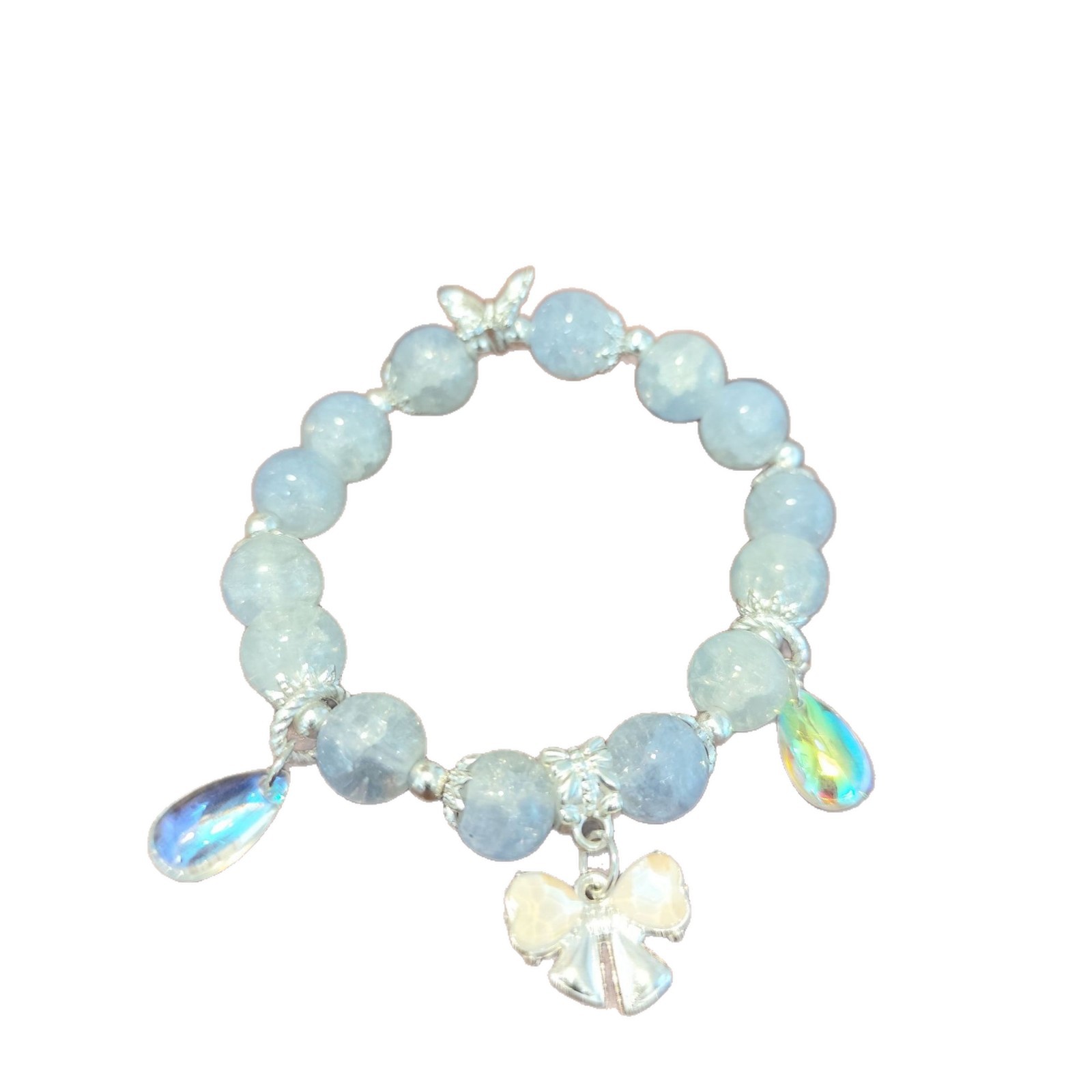 • S458 水晶AB彩蝴蝶结手链浅蓝色