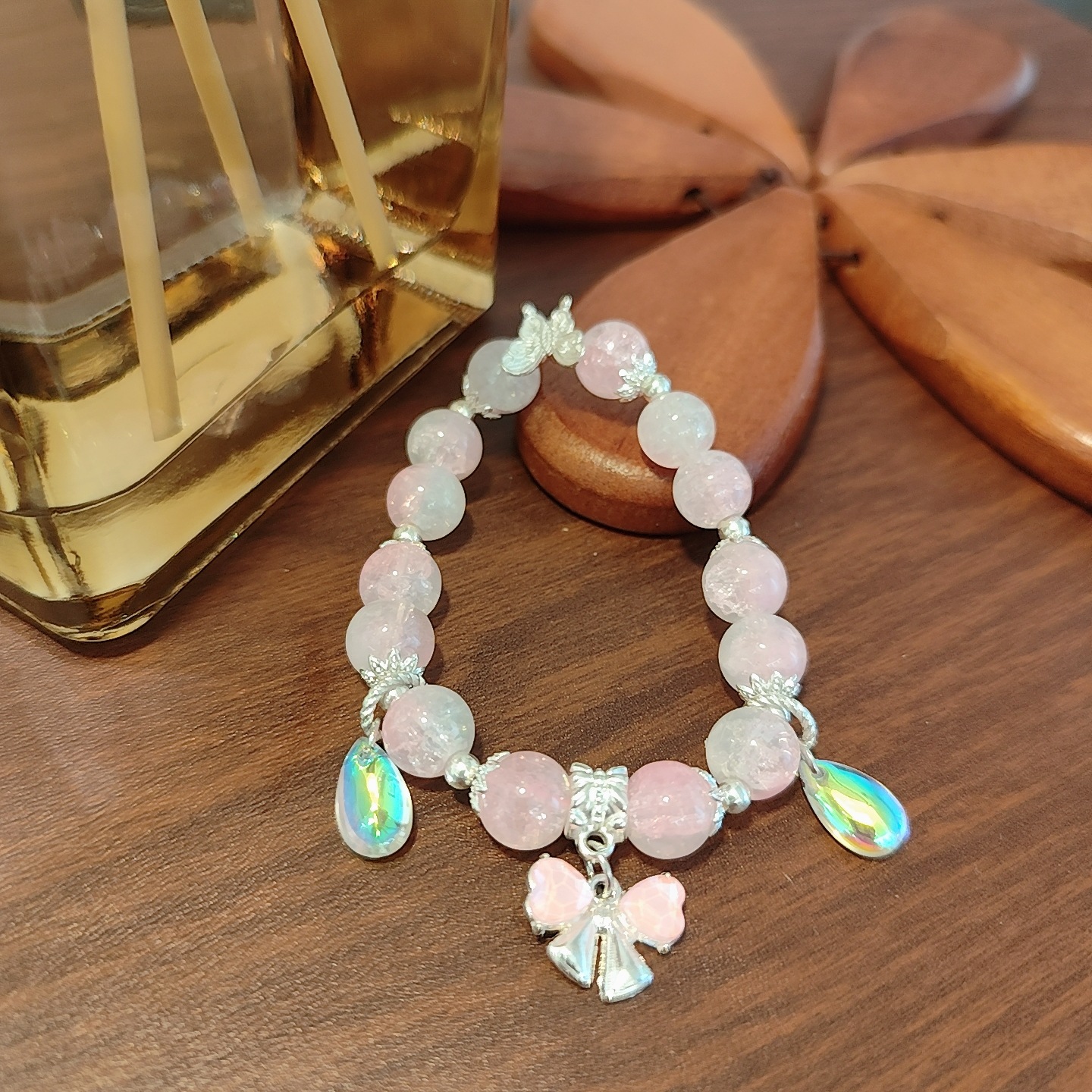 • S453 水晶AB彩蝴蝶结手链粉色