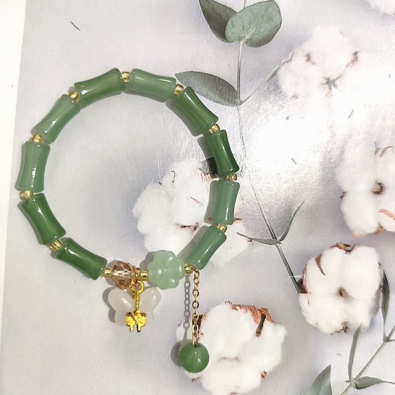 • Q36 竹节东陵绿 绿蝴蝶手链