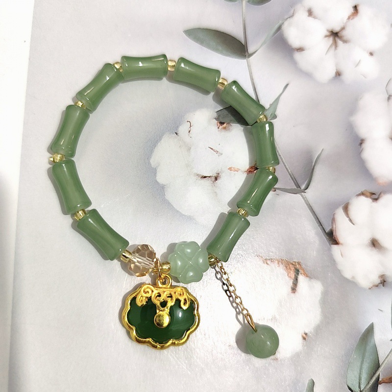 LA728可发样/东陵绿竹节手链新中式节节高手链平安扣玉葫芦手串景区热销饰品