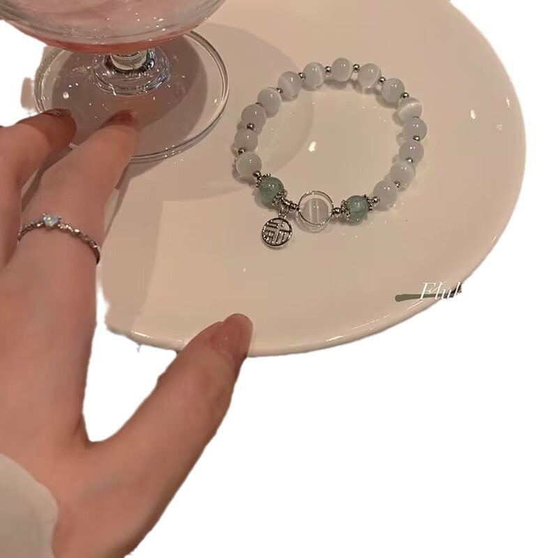 LA728可发样/新中式福牌串珠手链女夏设计气质仿猫眼石闺蜜珠子手串琉璃手工