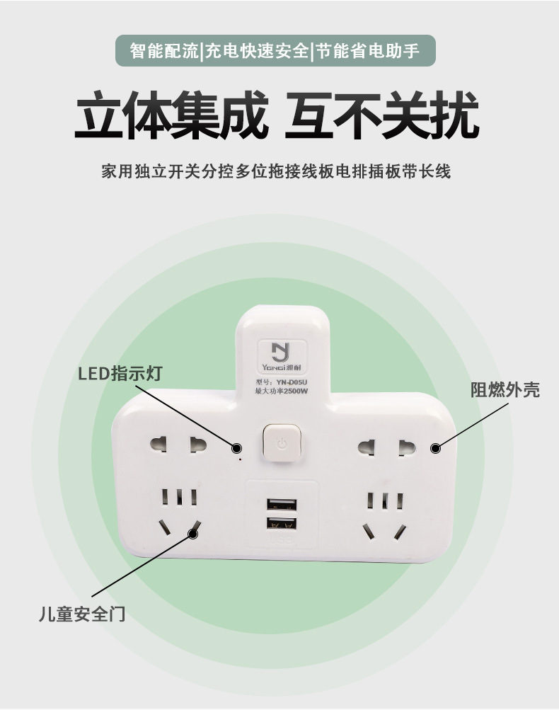 LA005可发样/雅耐插座转换器大功率usb一转多无线家用办公转换插排