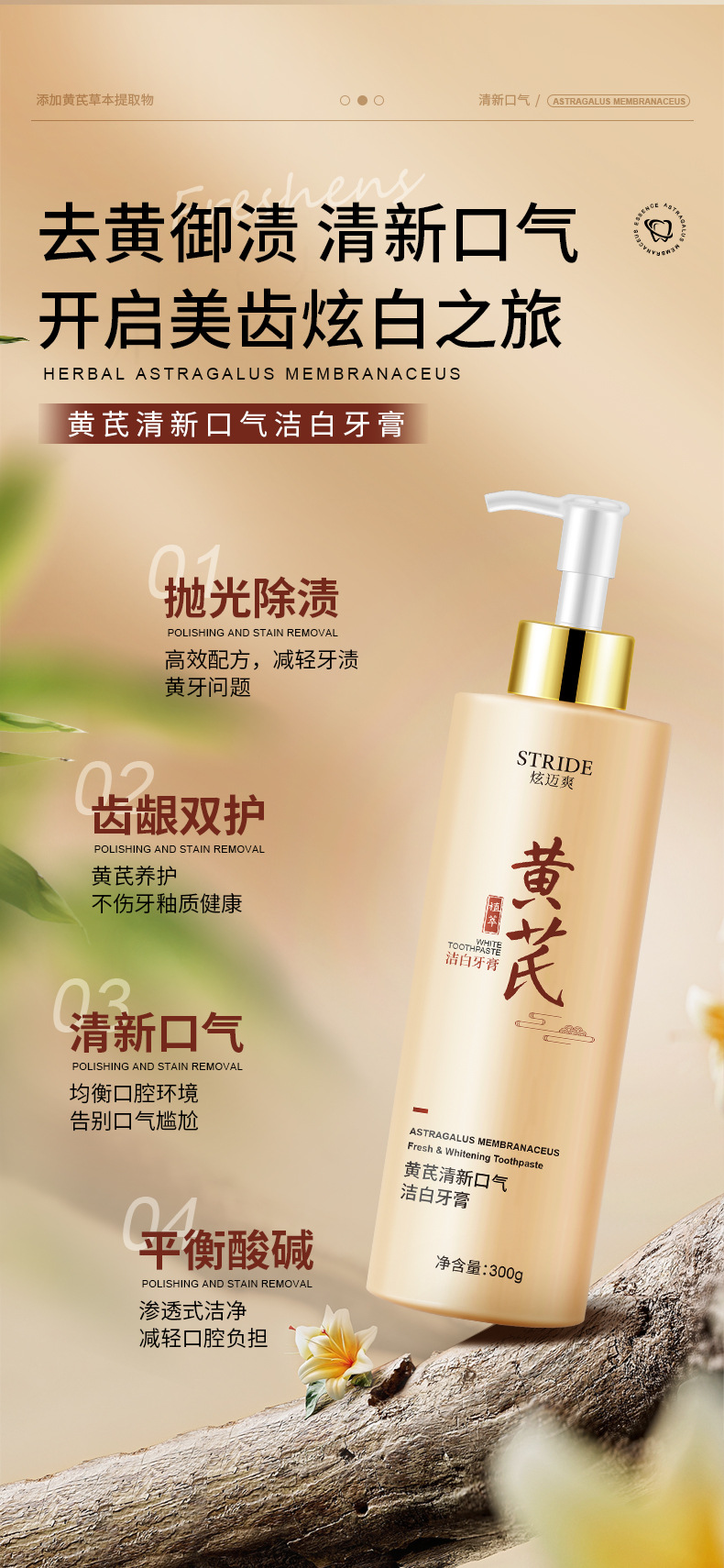 LA008可发样批发草本黄芪美白牙膏亮白牙齿中草药清新口气口臭去牙渍大容量