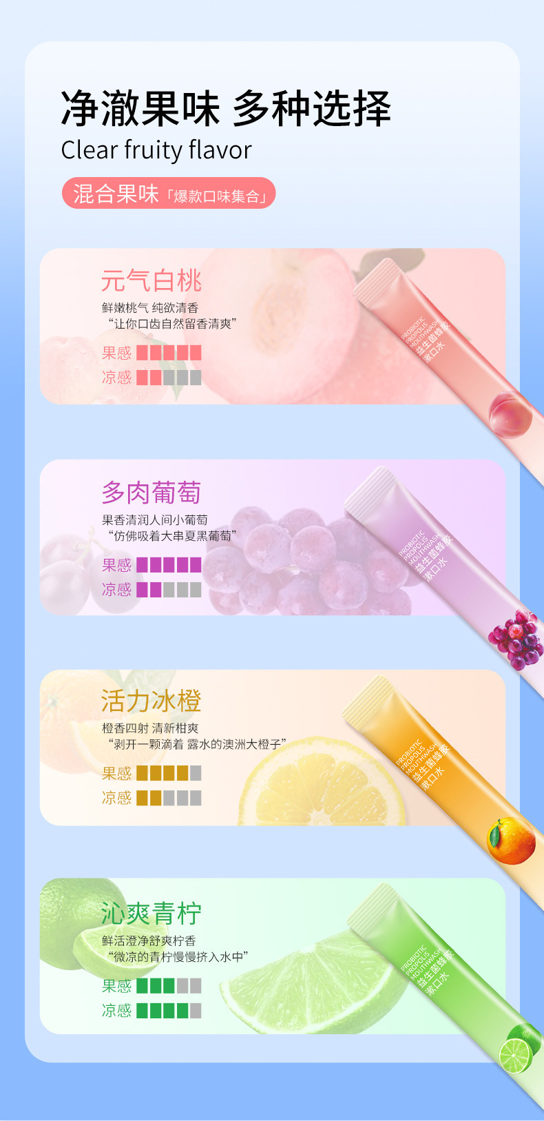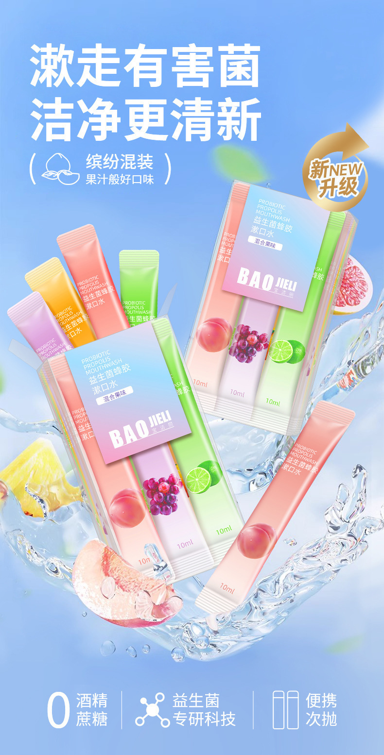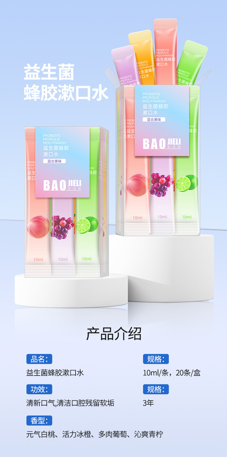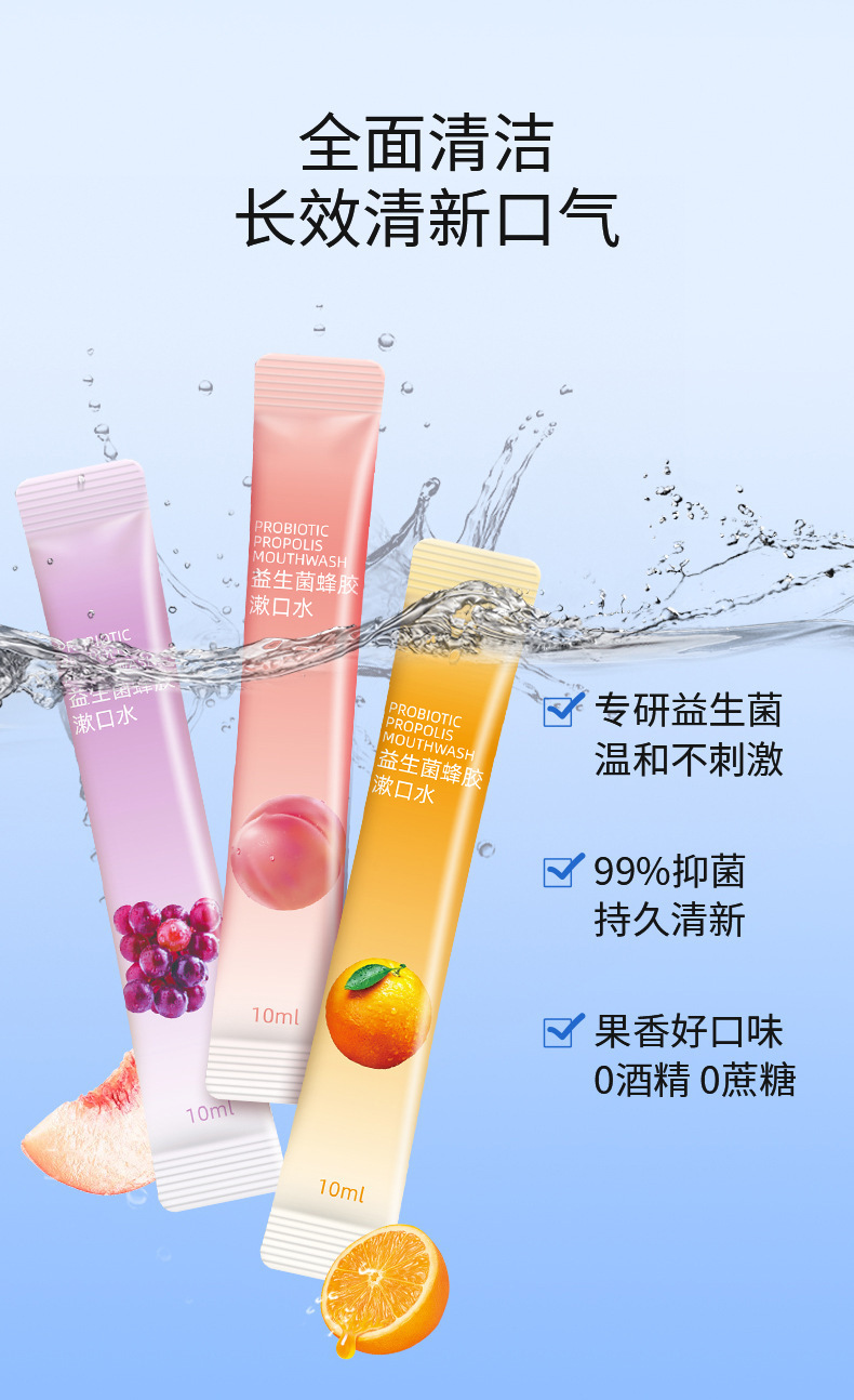 LA008可发样蜂胶葡萄味去口臭牙渍漱口水口气清新口腔护理便携条装漱口水批发