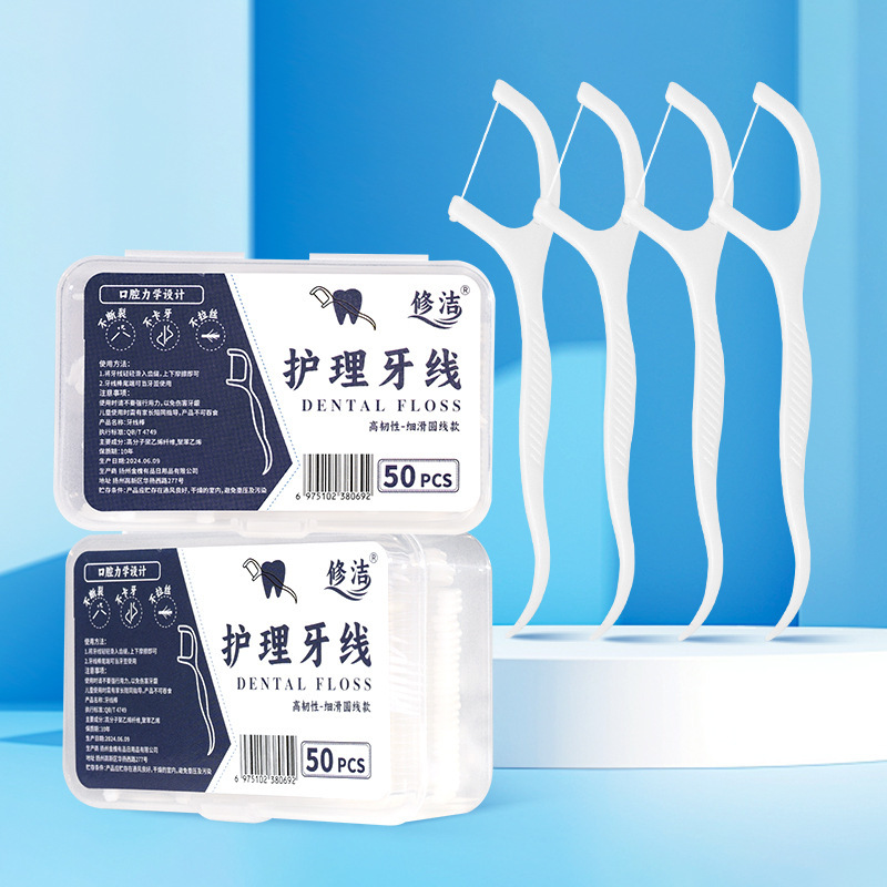 LA008可发样批发一次性细滑牙线棒牙线家用50支收纳盒塑料牙签口腔清洁家庭装