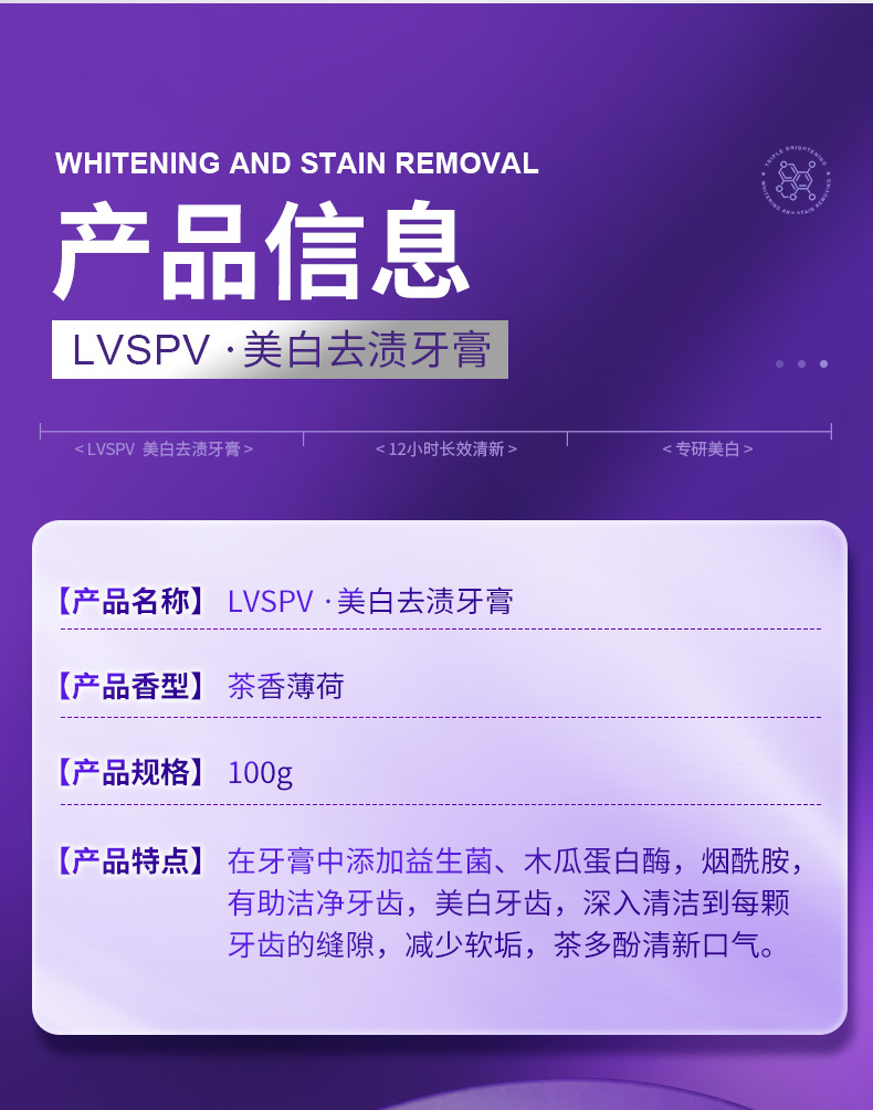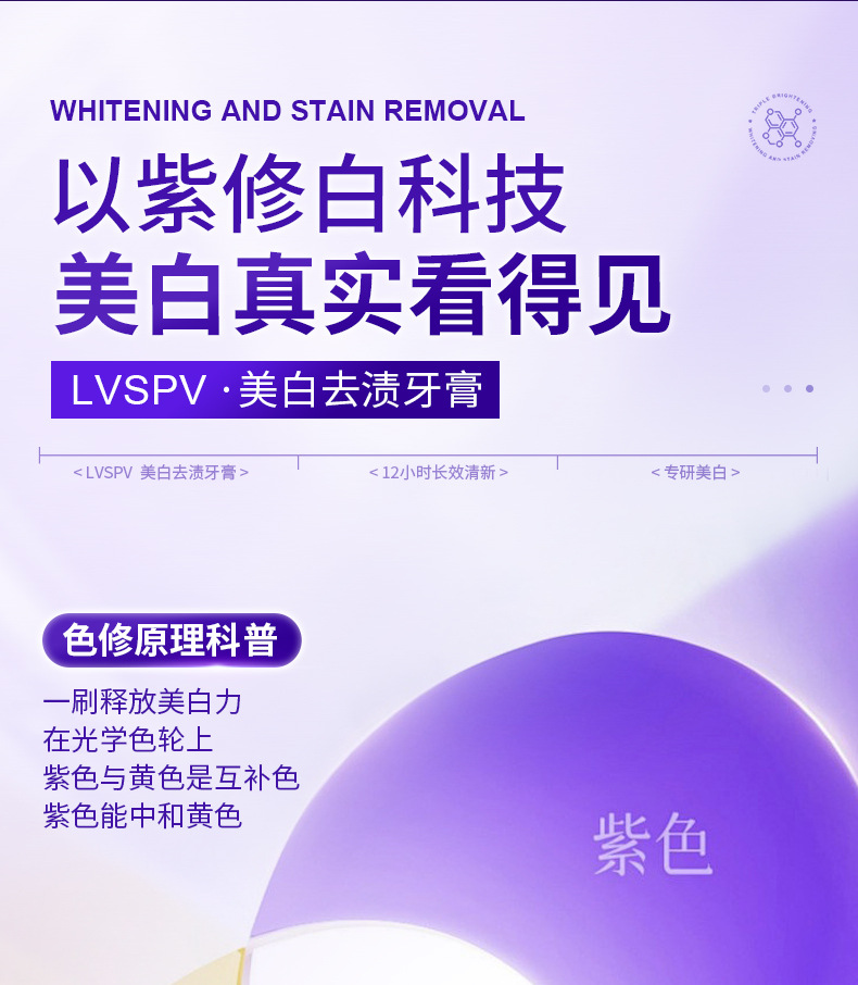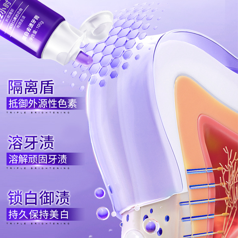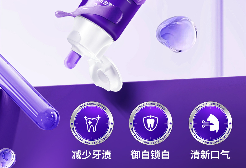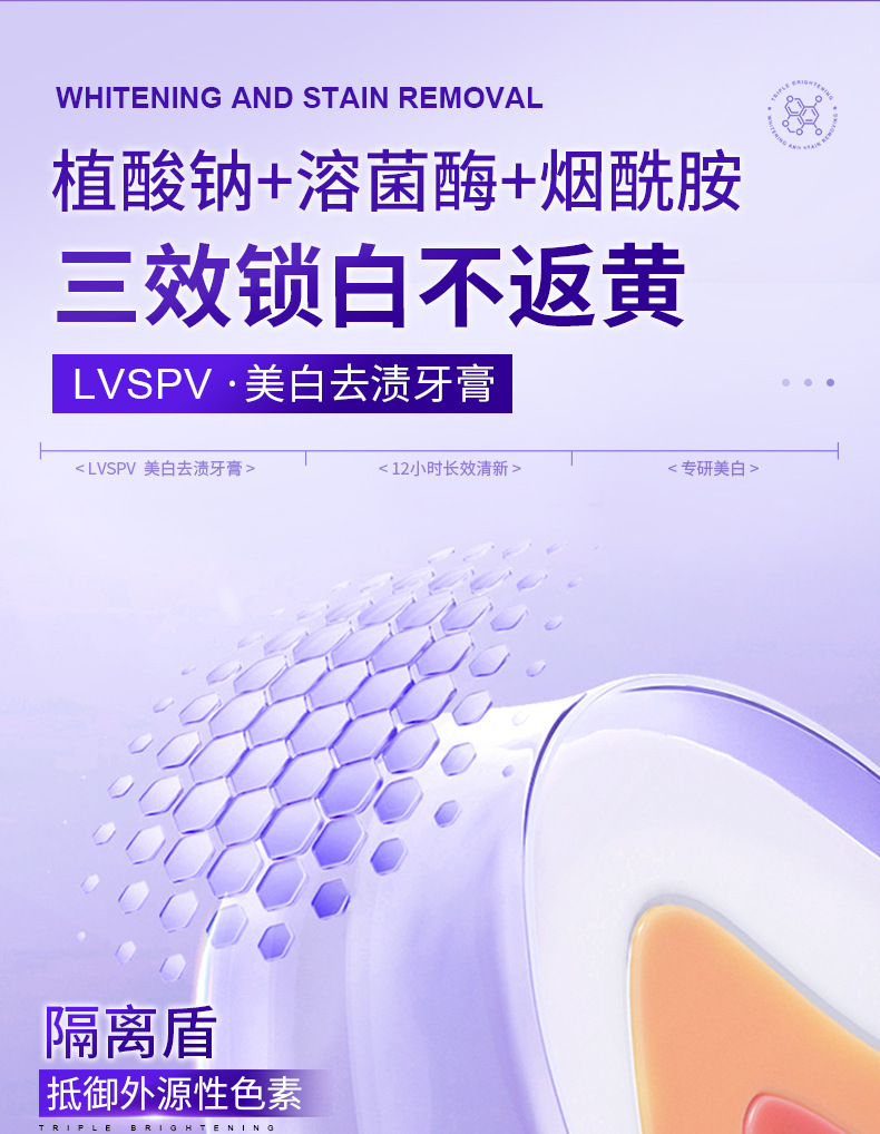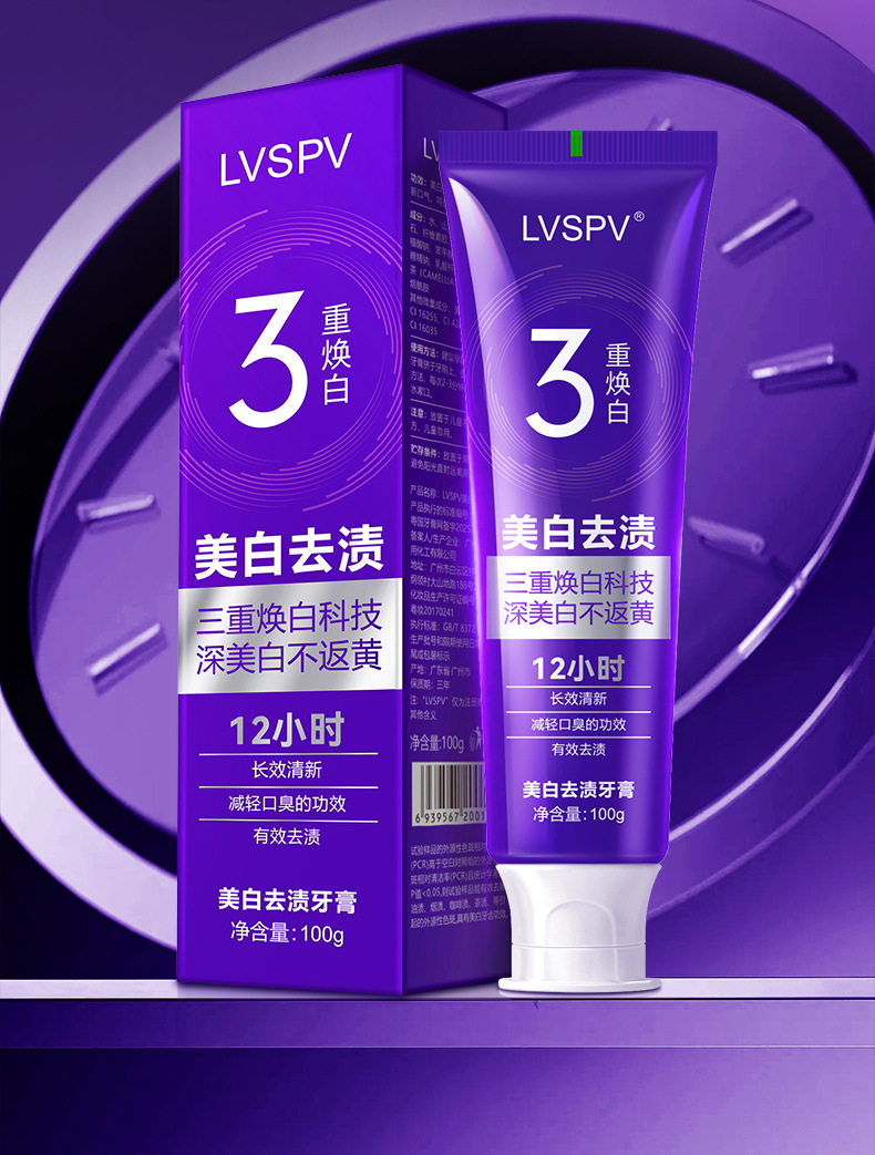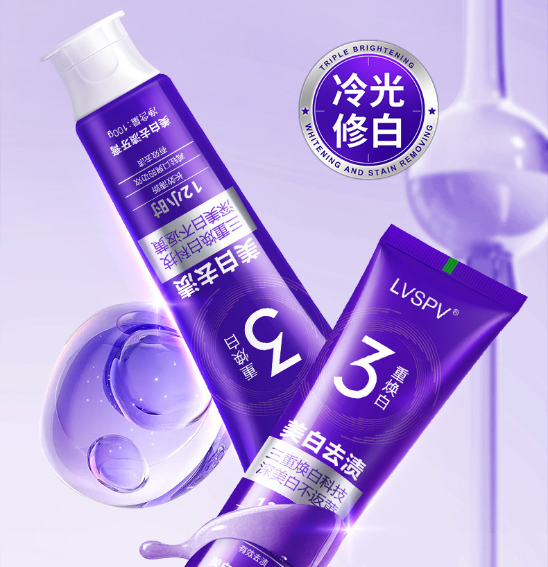 LA008可发样LVSPV三重焕白色修美白牙膏清新口气减口臭紫色去黄冷光修白牙齿
