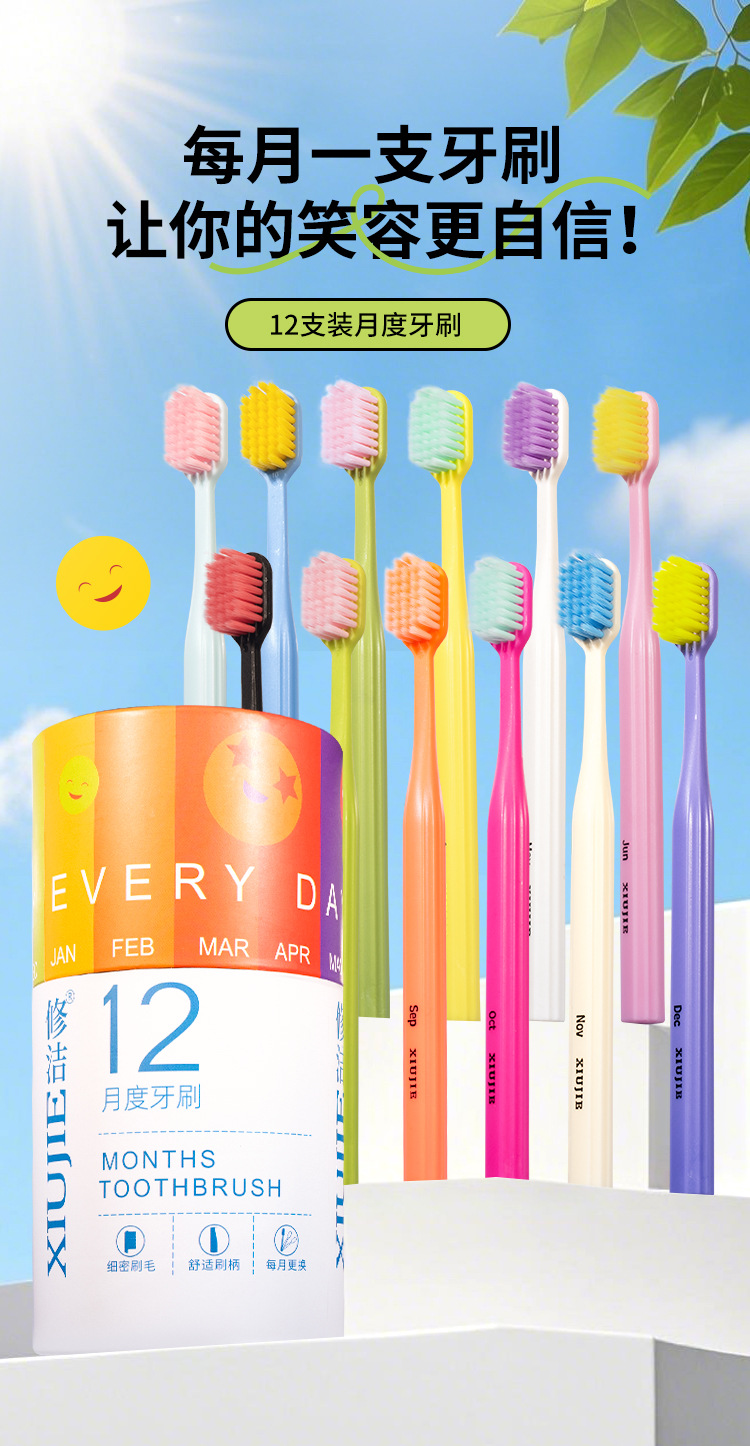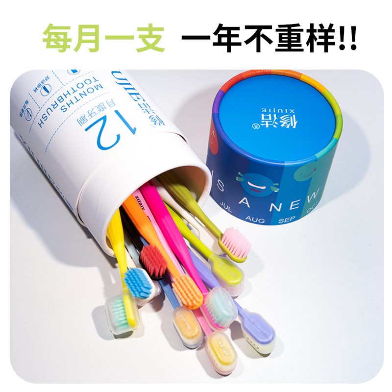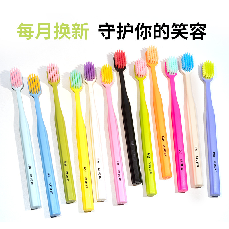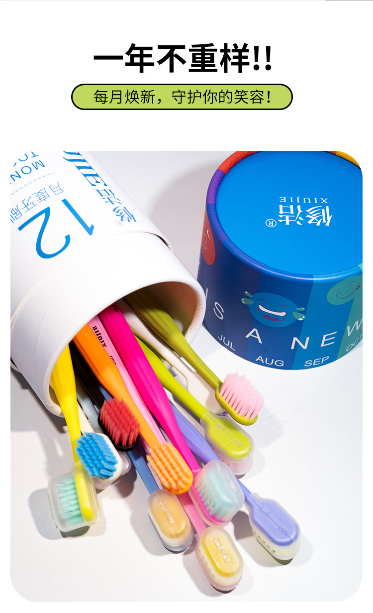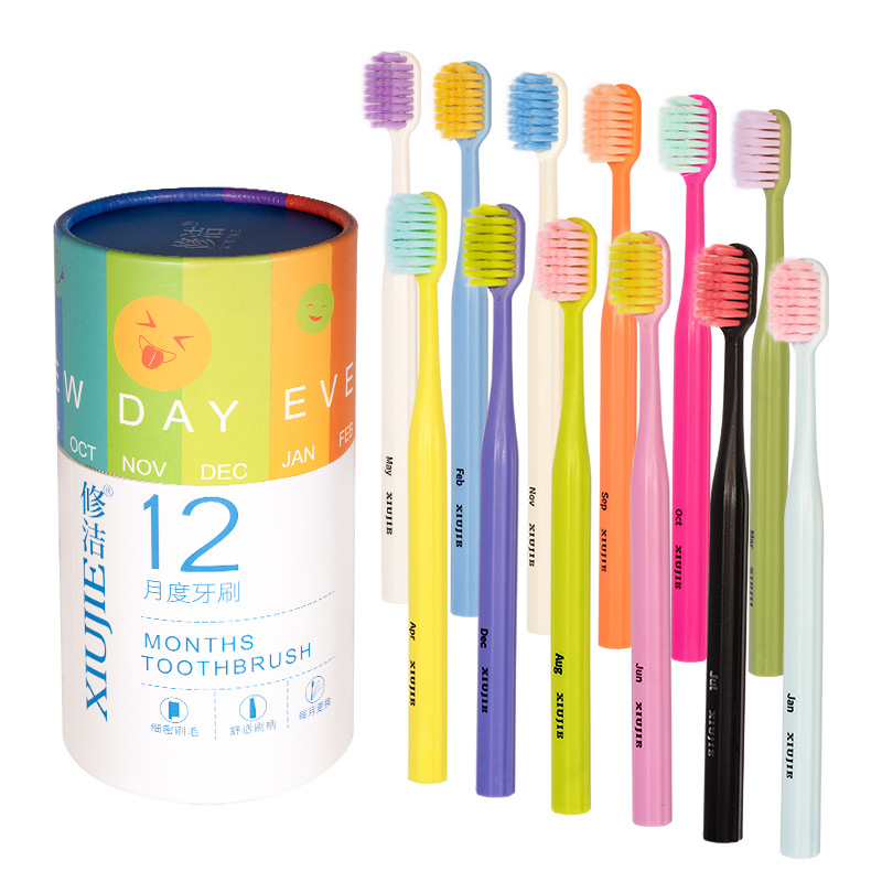 LA008可发样批发牙刷12支装彩虹牙刷成人宽头软毛护龈正品家庭装男女旅行专用