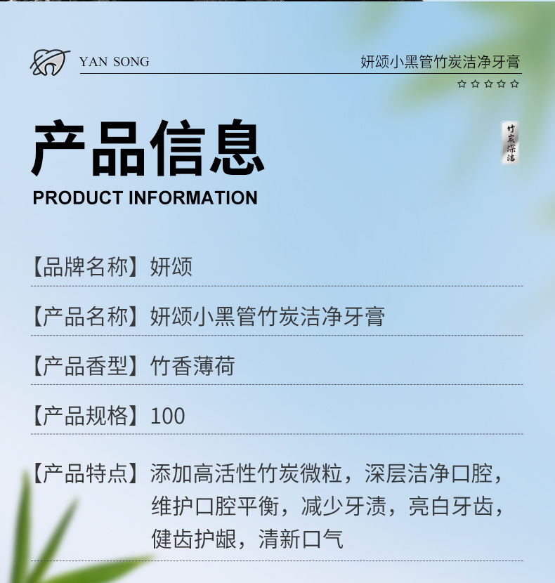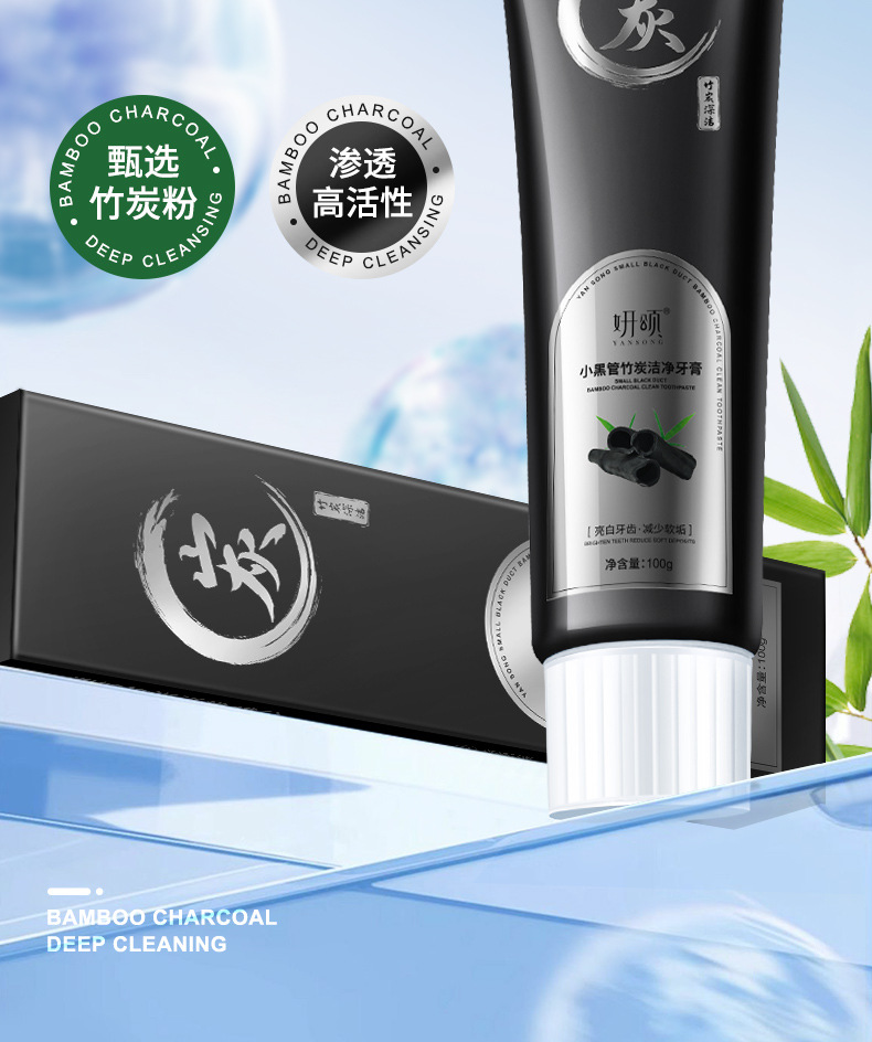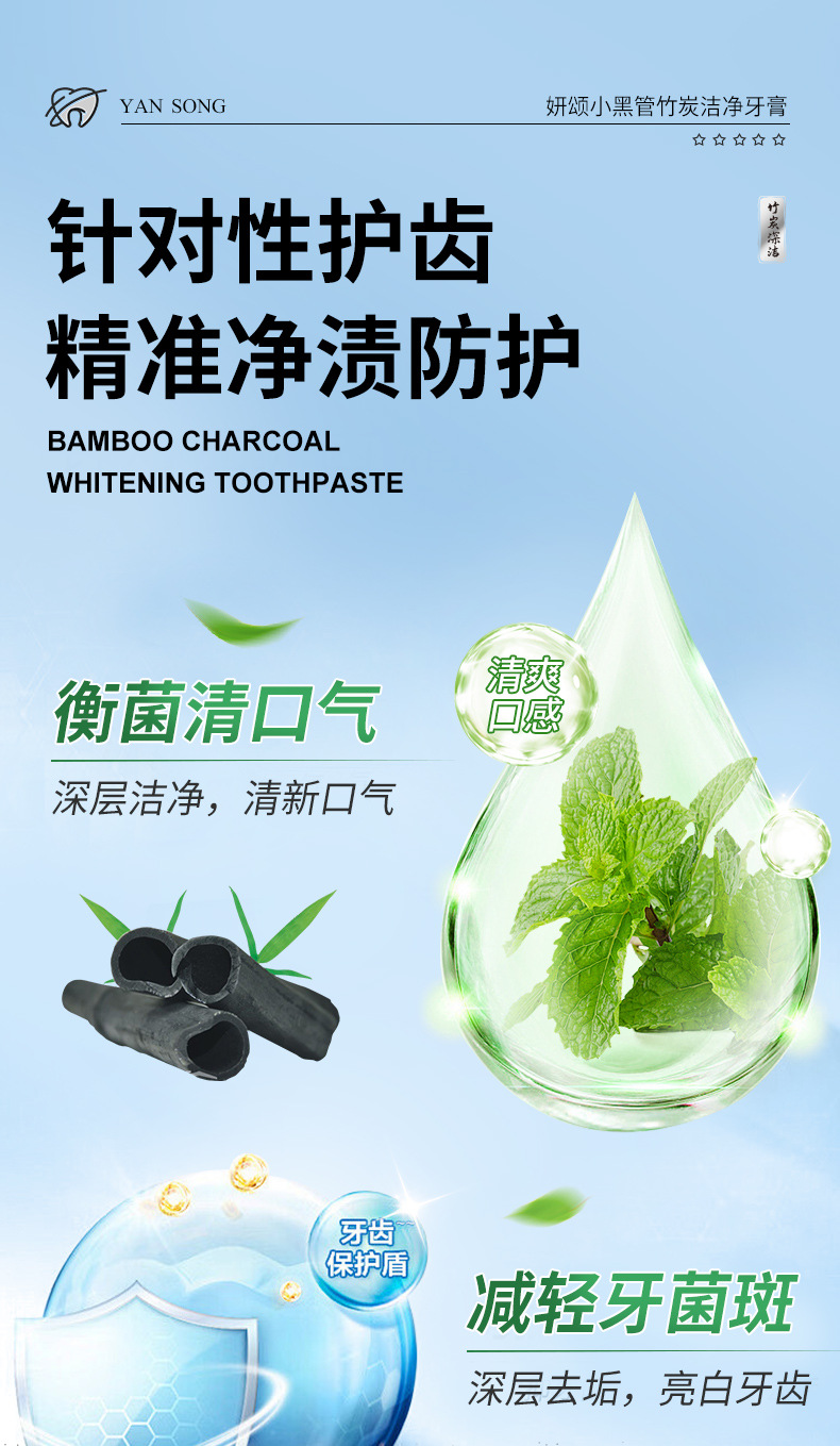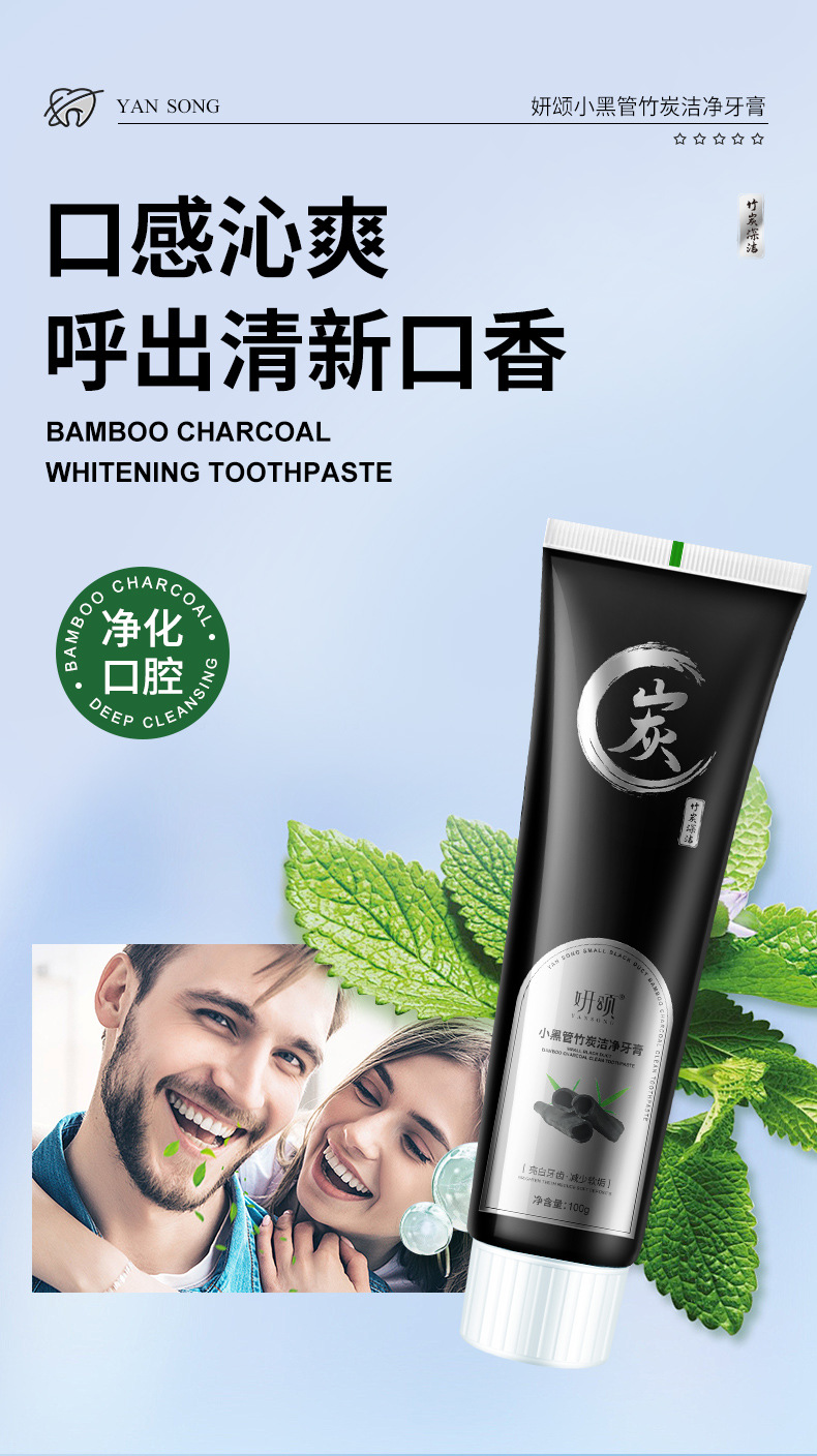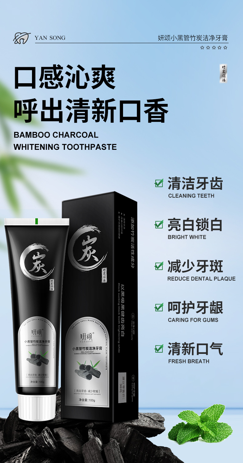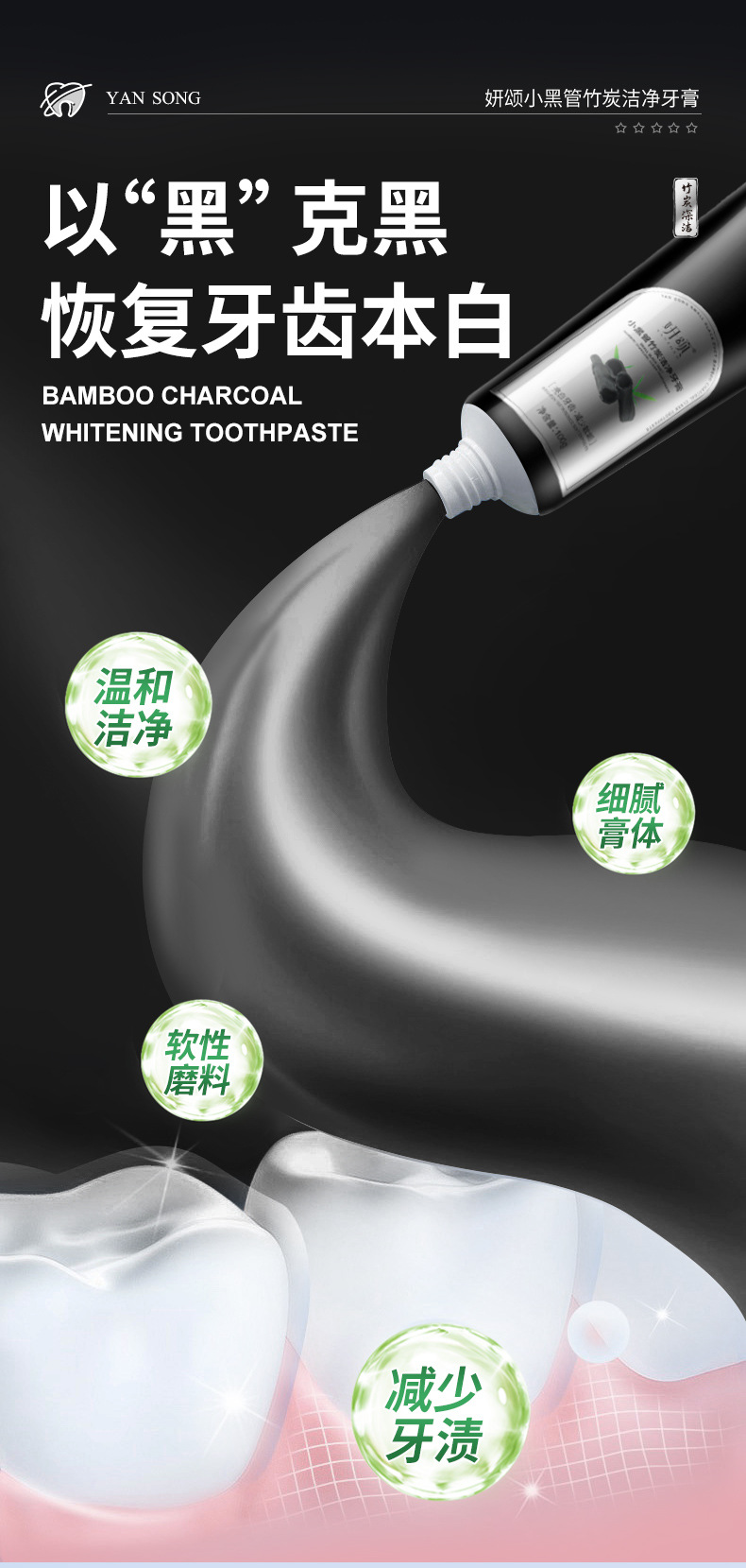LA008可发样妍颂小黑管竹炭洁白批发牙膏口臭去黄去牙渍亮白清新口气牙膏现货