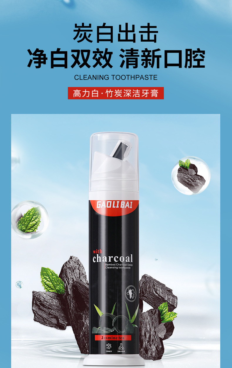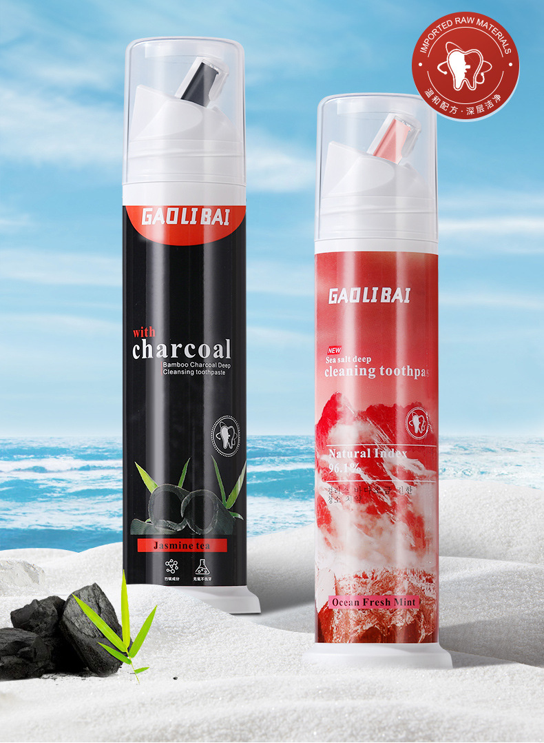 LA008可发样批发益生菌牙膏美白去烟渍海盐平衡菌群清新口气去渍竹炭护龈牙膏