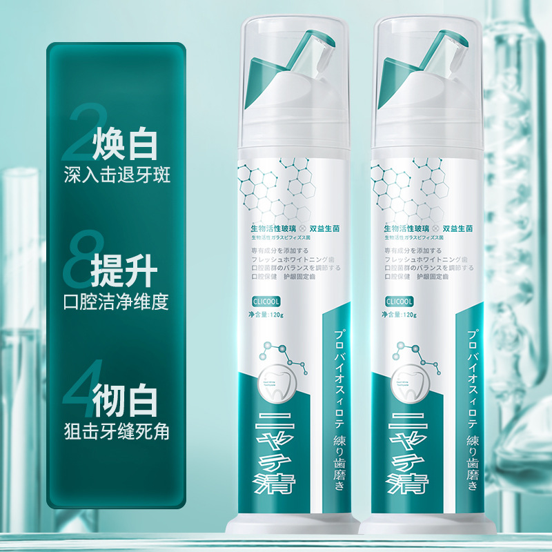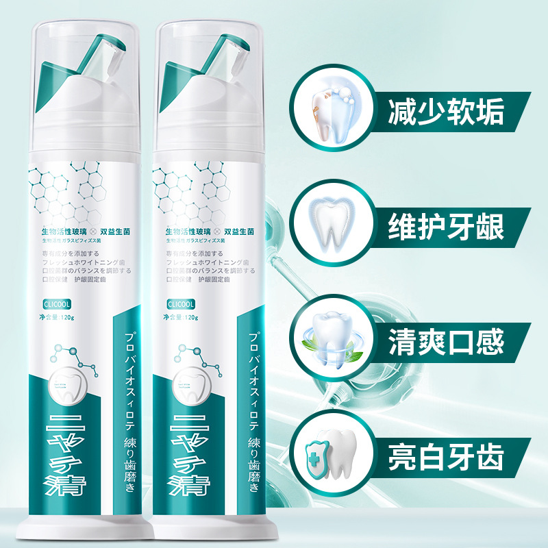 LA008可发样双益生菌牙膏美白按压式牙膏直立式生物活性玻璃口气清新正品批发
