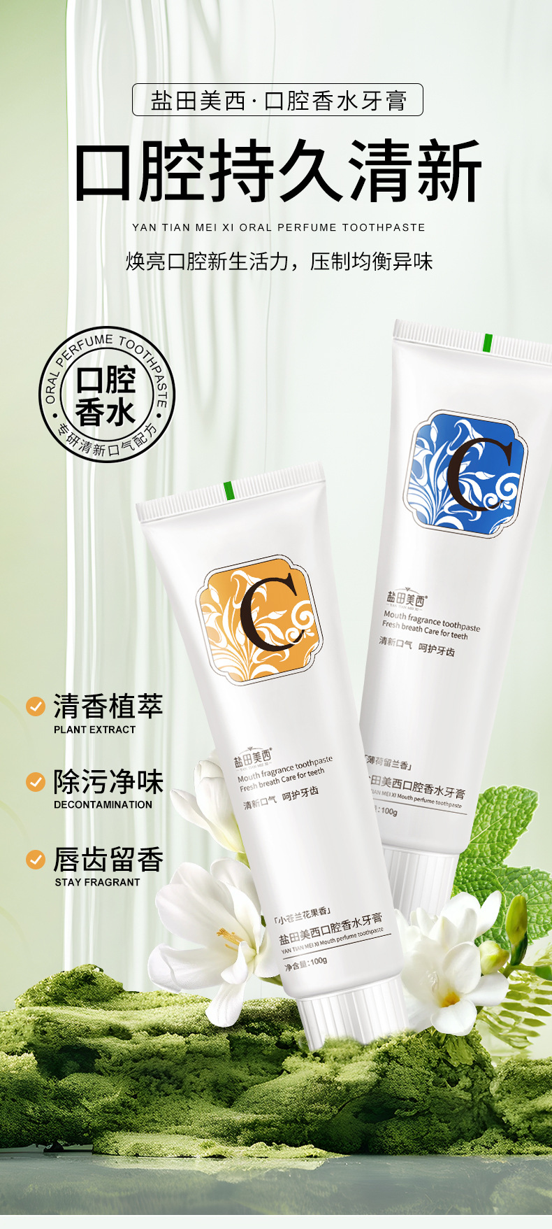 LA008可发样盐田美西口臭清新口气香水牙膏呵护牙龈亮白净齿清洁牙齿现货批发