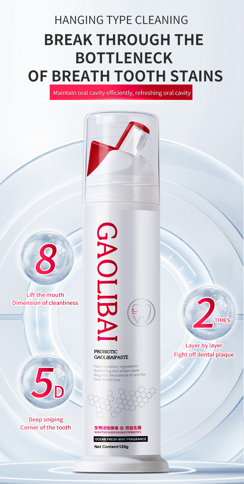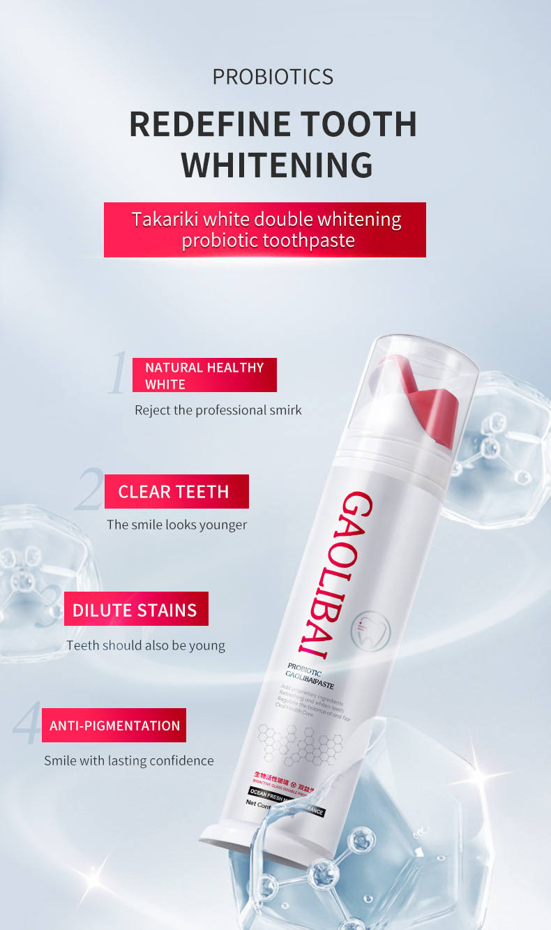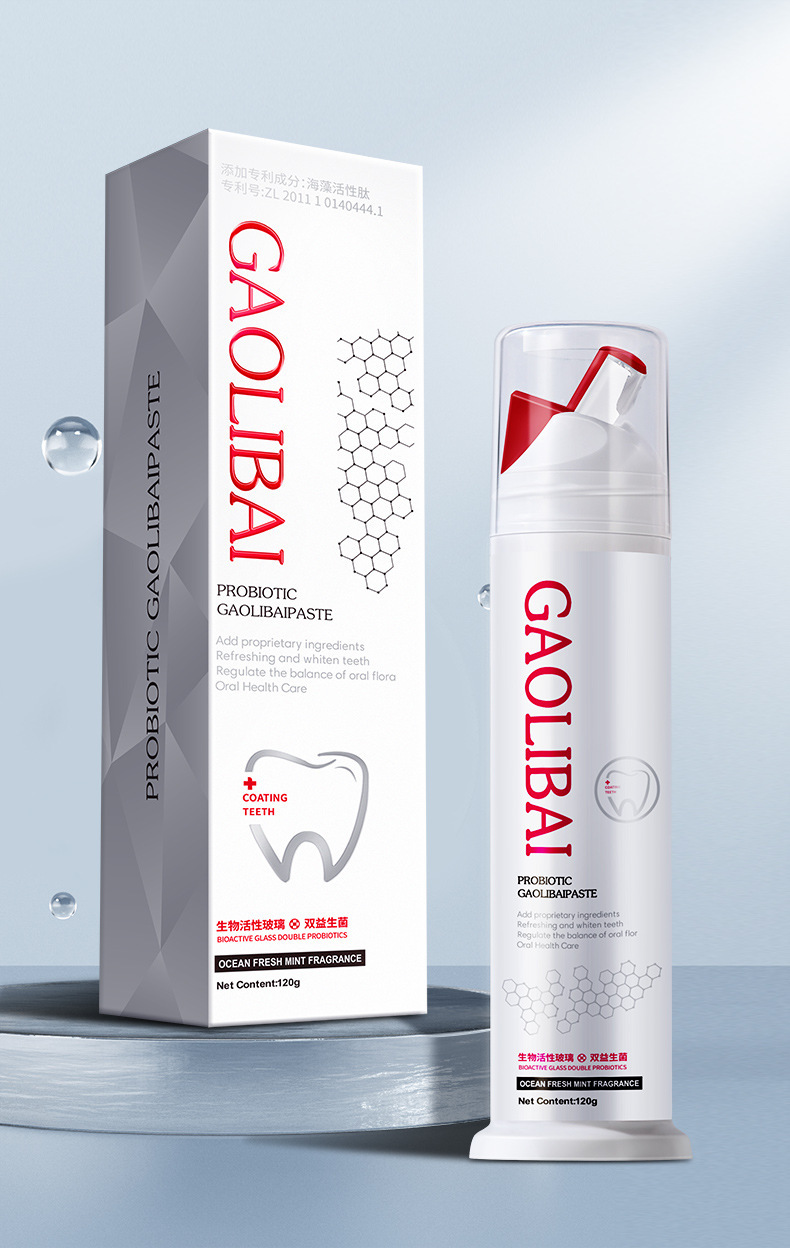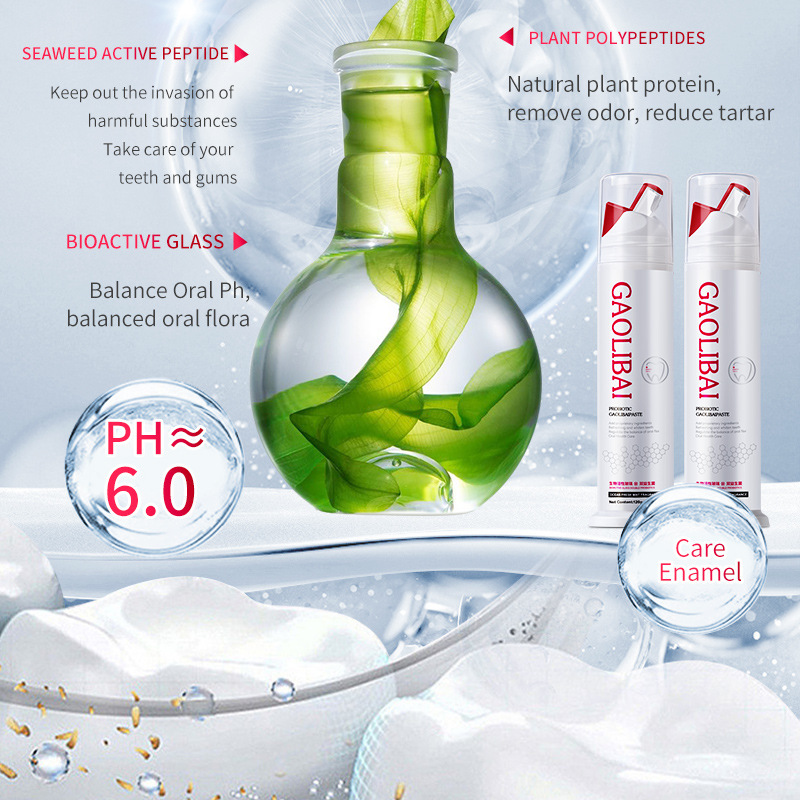 LA008可发样【跨境】高力白双重美白益生菌牙膏海藻活性肽去烟渍牙膏清新口气