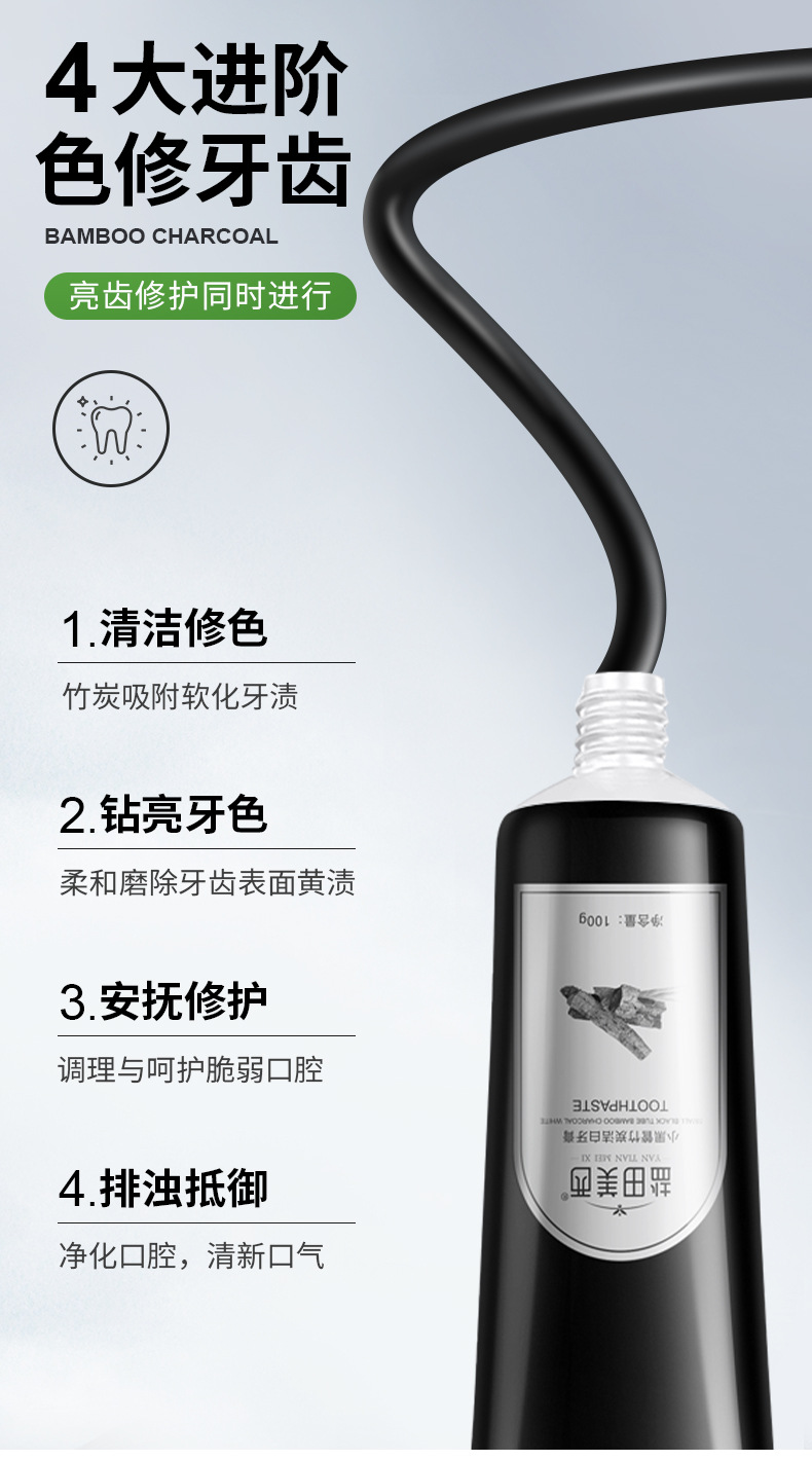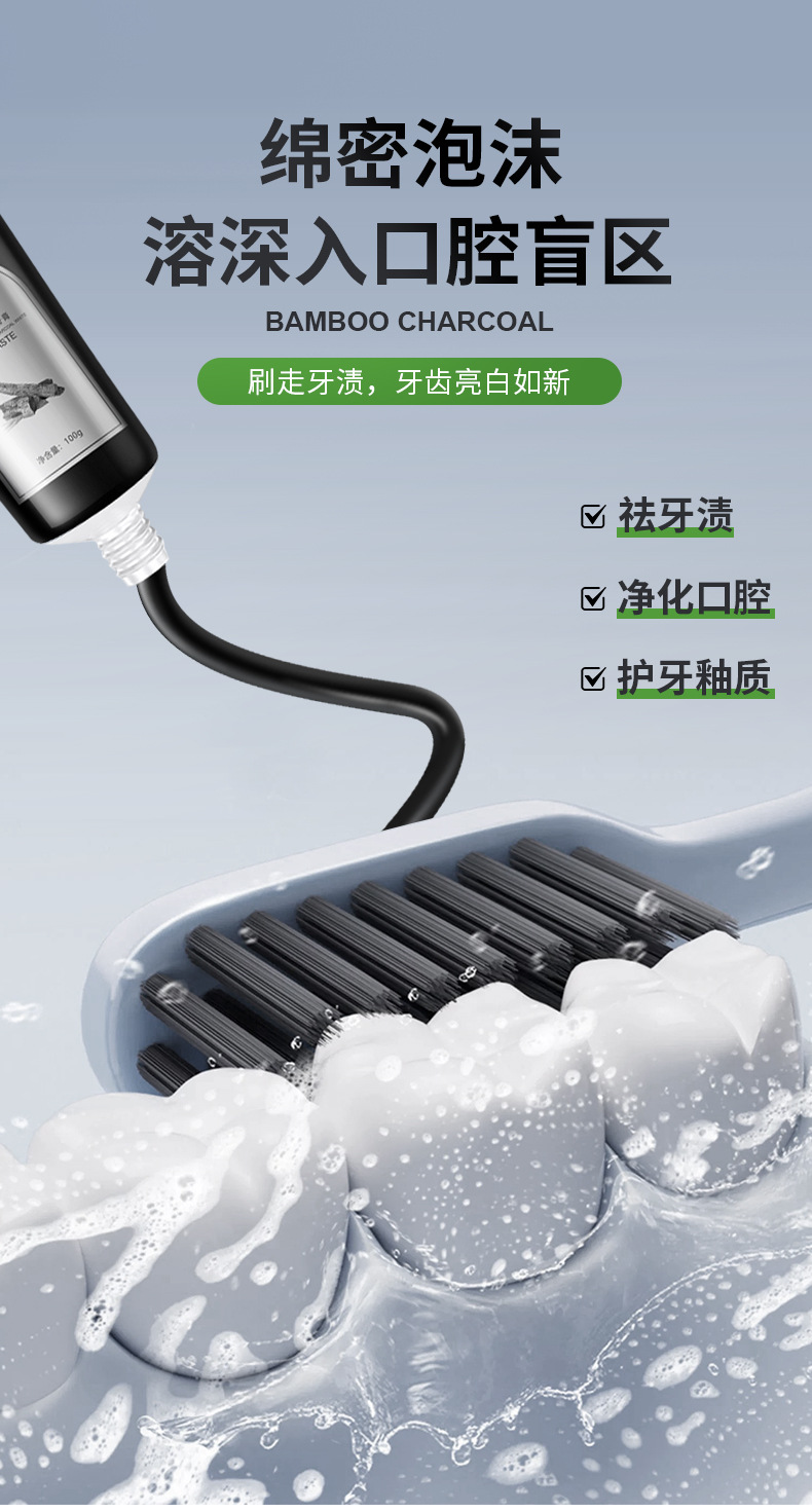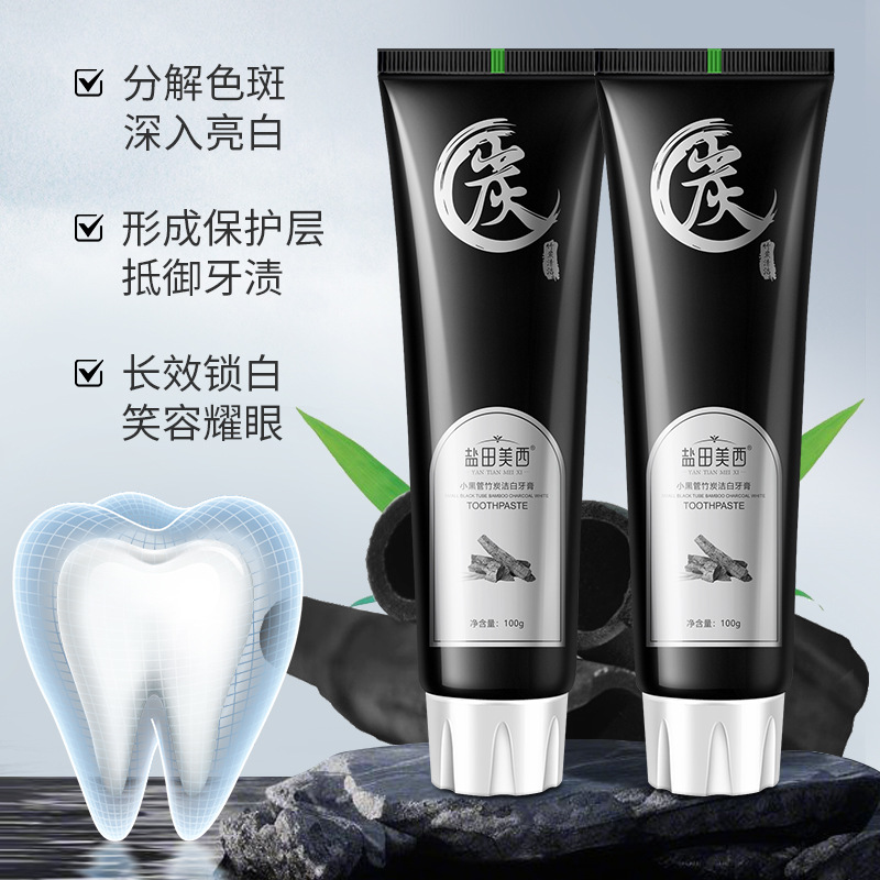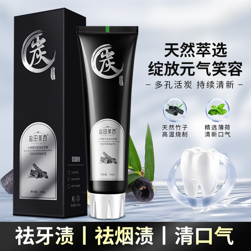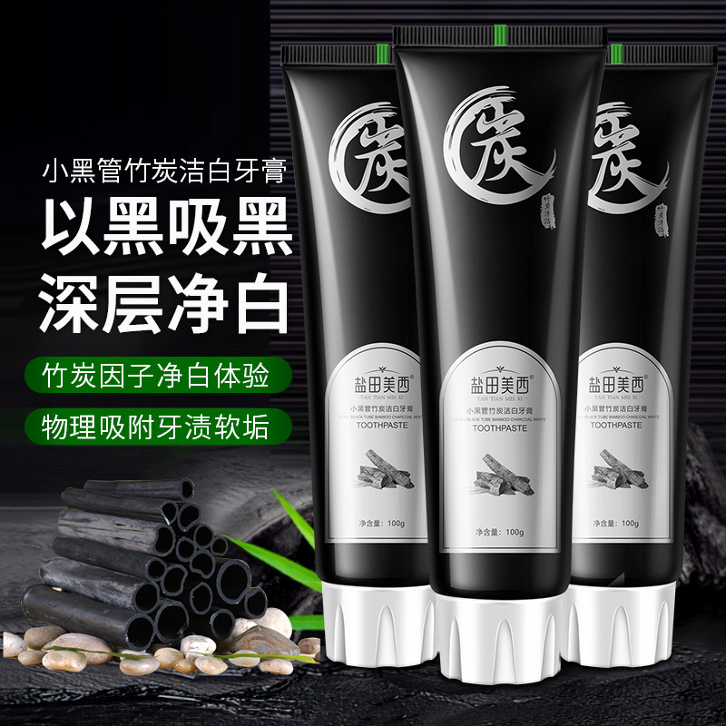 LA008可发样批发亮白牙齿清新口气小黑管竹炭牙膏去牙渍烟渍去黄护龈口腔清洁
