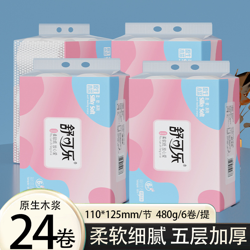 LA346可发样/6大卷卫生纸巾无芯家庭实惠装卷纸舒可乐原生木浆手纸厕纸卷筒纸
