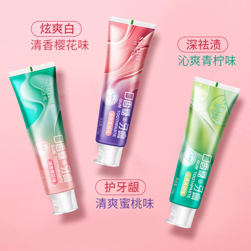 LA008可发样推荐美白口香糖牙膏清新口气亮白去牙渍口臭呵护牙龈牙膏批发厂家