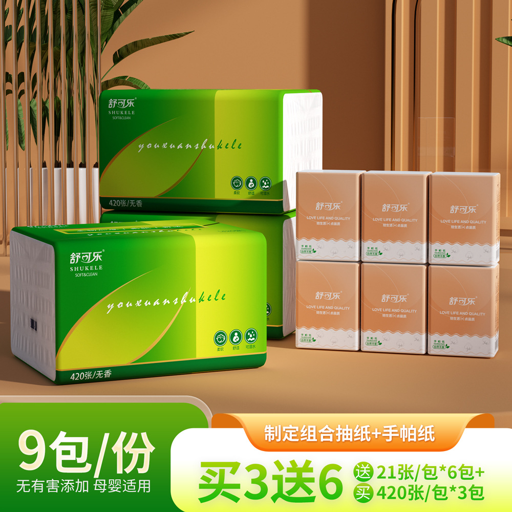 LA346可发样/9包家用实惠装抽纸卫生纸超值母婴加大加厚擦手纸巾DF