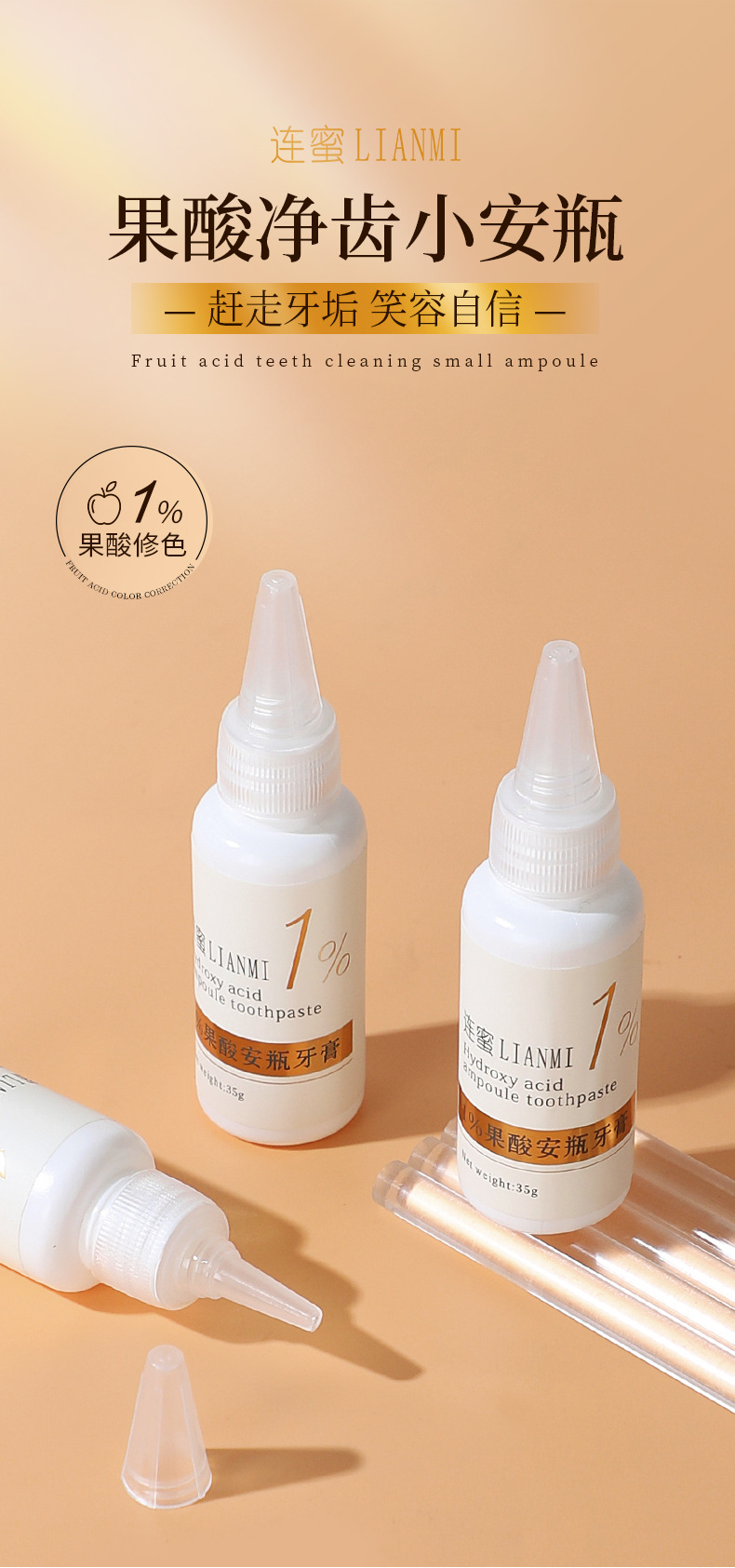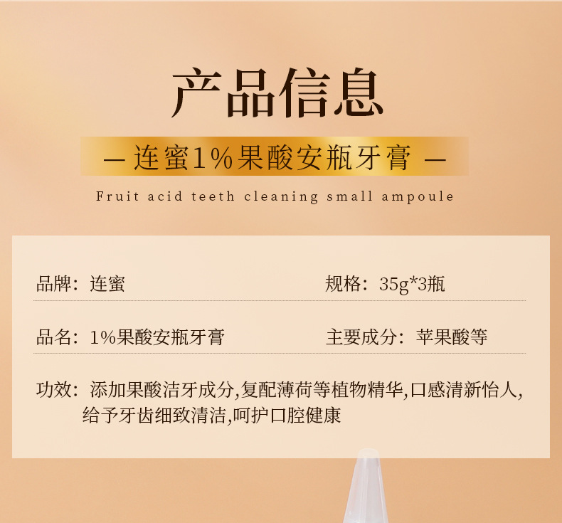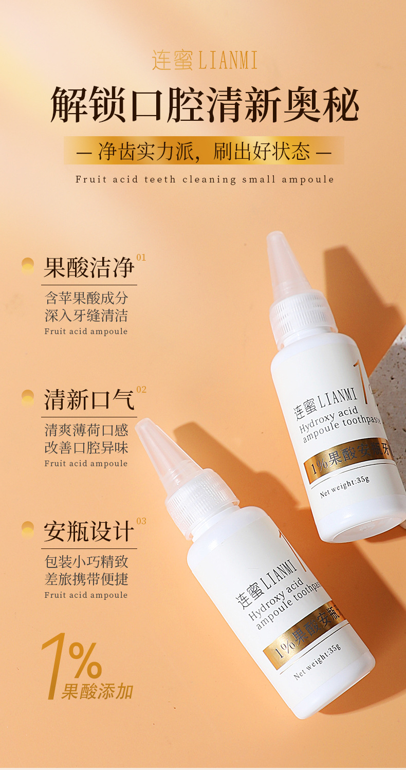 LA008可发样1%果酸安瓶牙膏批发清新口气提亮去渍温和清洁护龈亮齿牙膏套盒装