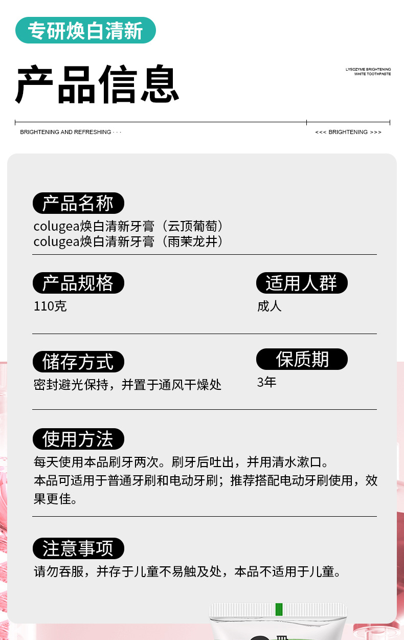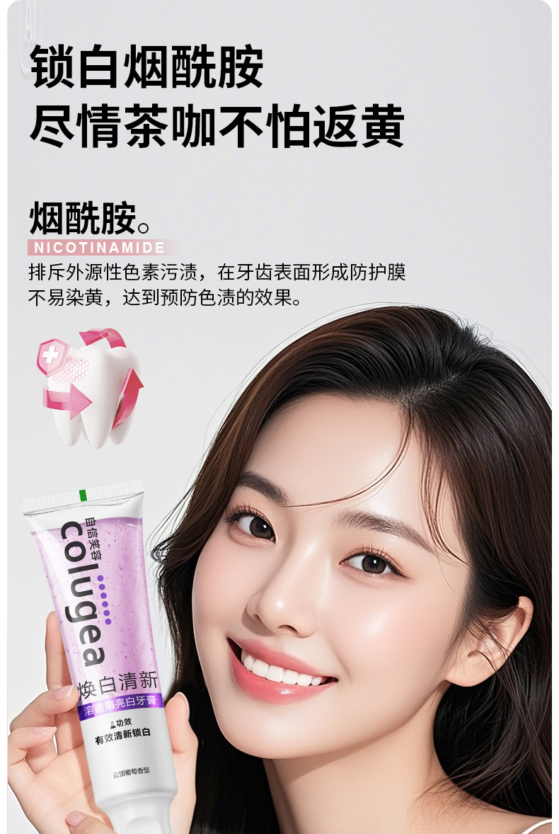 LA008可发样COLUGEA溶菌酶亮白牙膏清新口气厂家批发专用成人清洁焕白去牙渍