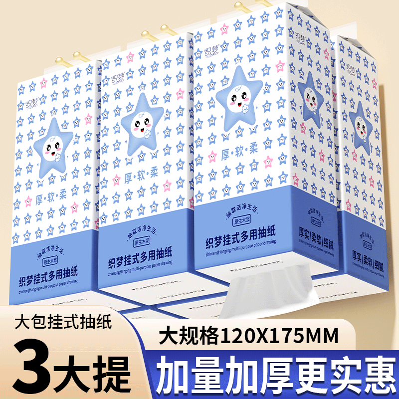 LA346可发样/3大提挂式抽纸家用悬挂抽纸巾餐巾纸实惠装擦手纸卫生纸XR