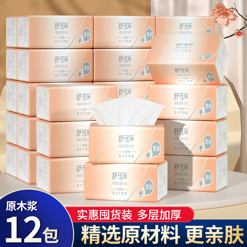 LA346可发样/12包装抽纸原生木浆纸巾批发实惠装餐巾纸家庭装纸抽卫生纸家用