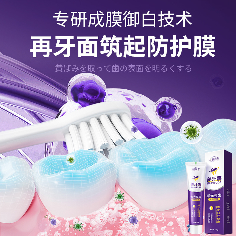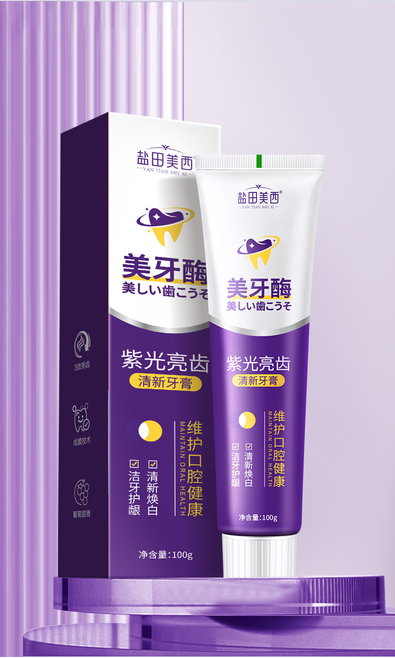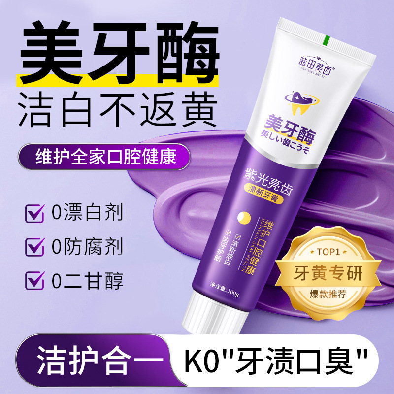 LA008可发样批发美牙酶紫光亮齿牙膏黄牙渍牙垢口臭清新口气清洁口腔亮白祛渍