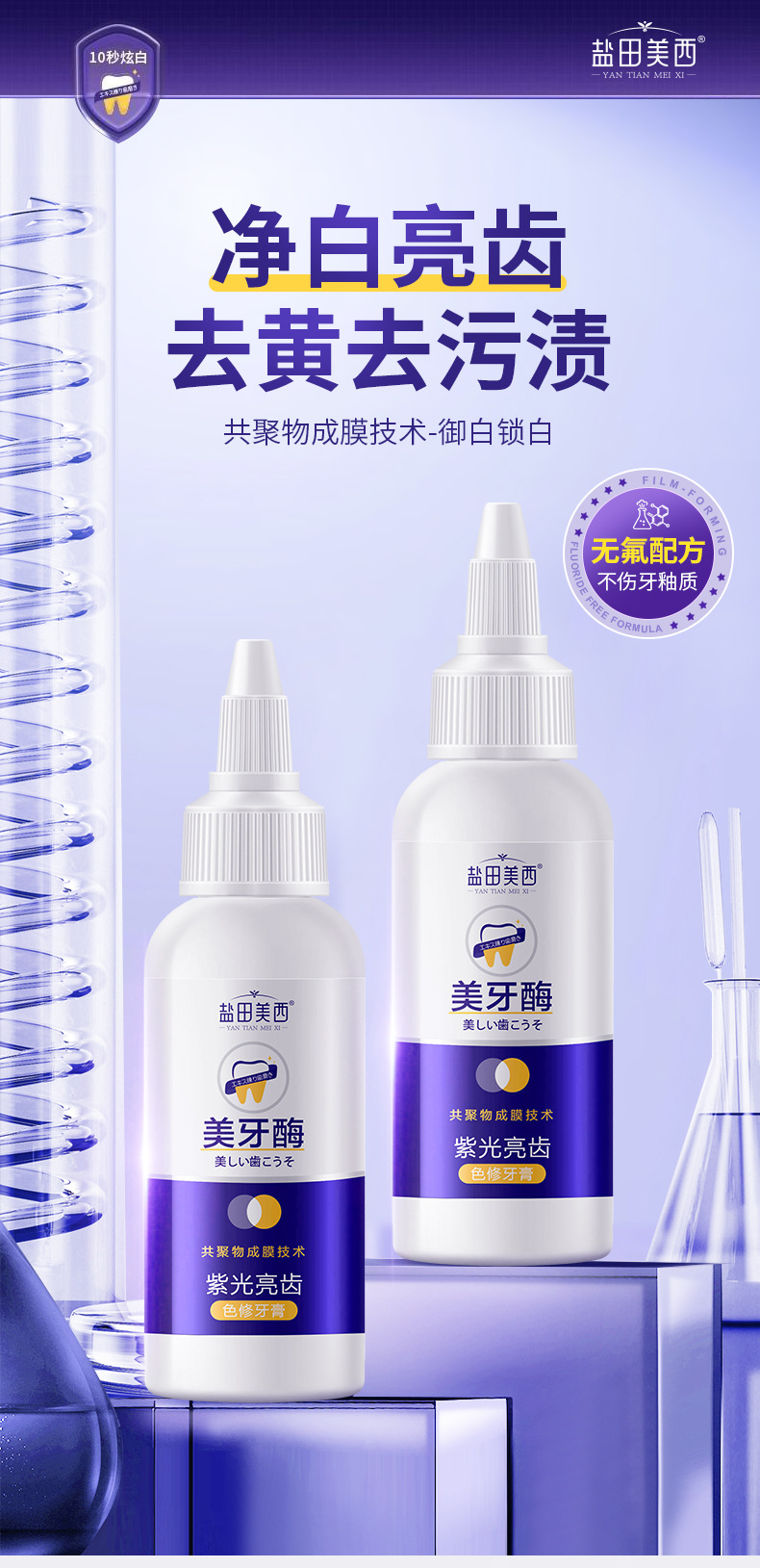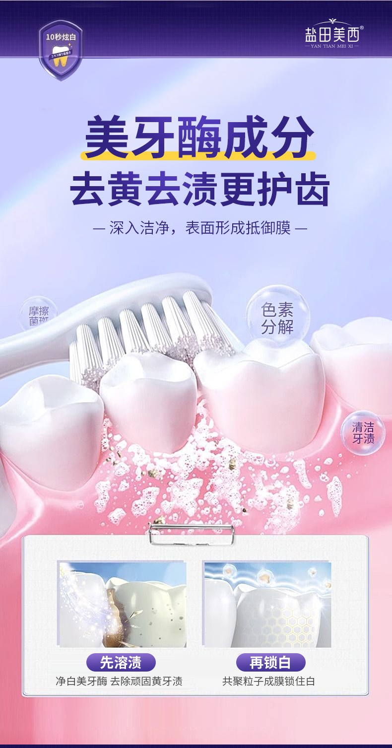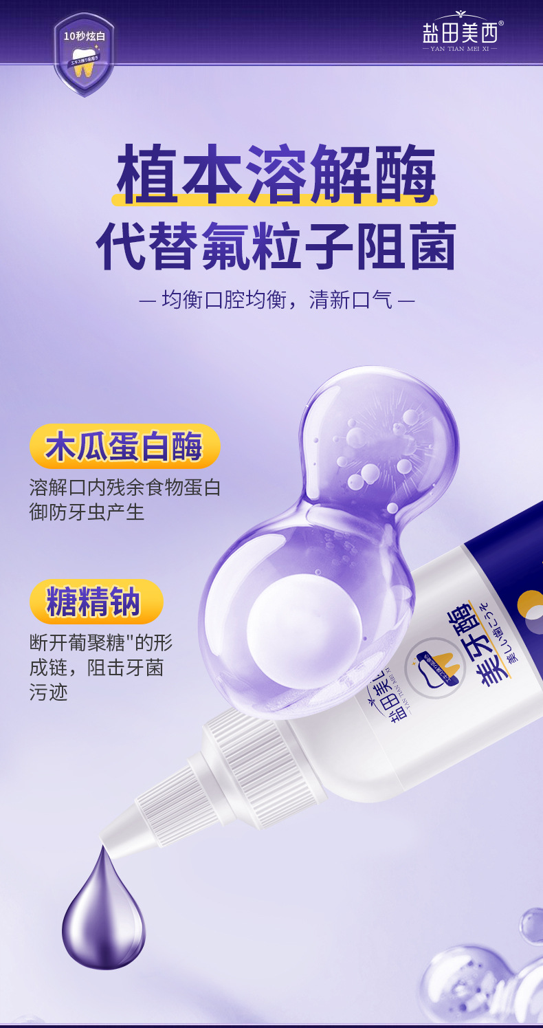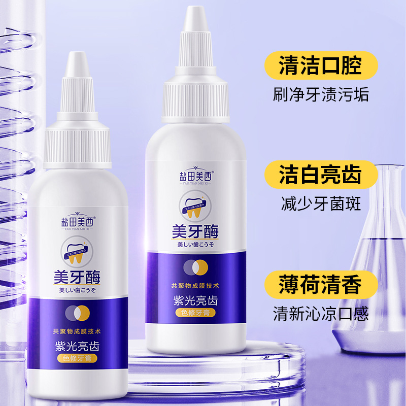 LA008可发样批发厂家紫色亮齿色修美牙酶牙膏亮白清洁去牙渍口气清新口臭正品
