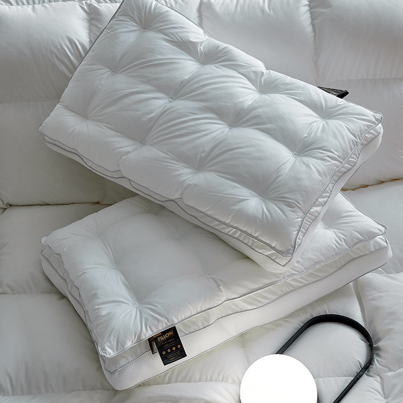 LA334可发样/全棉柔赛丝高端二合一贴合支撑护颈羽丝绒枕芯不塌陷透气零压家用