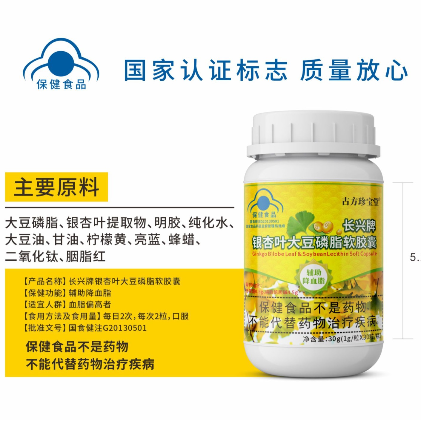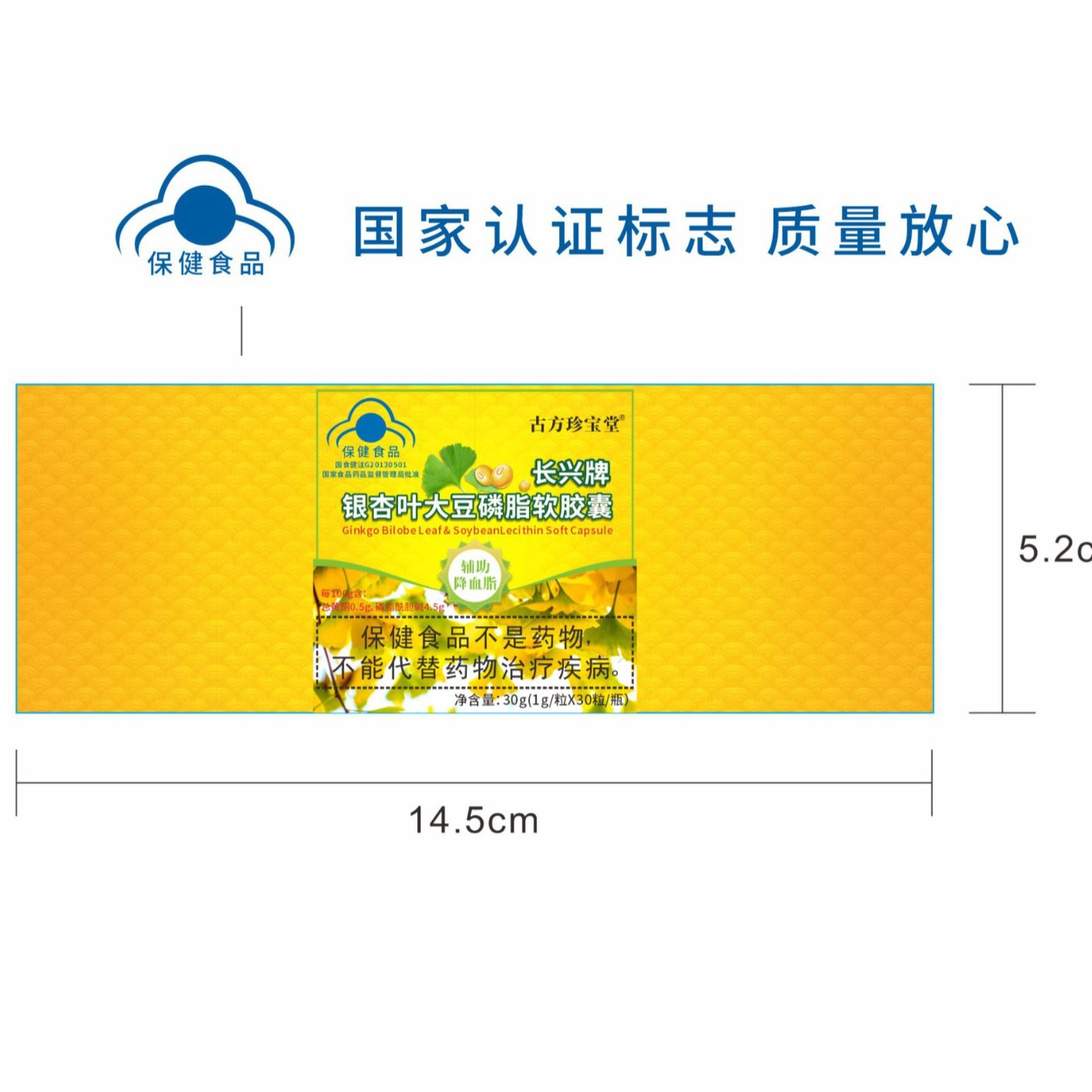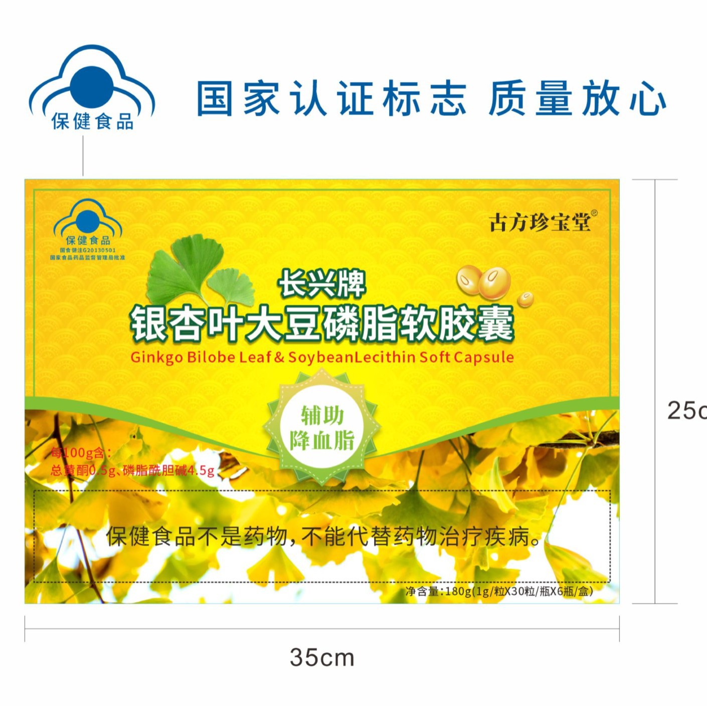 LA012定制/定制古 方珍宝堂长兴牌银杏叶大豆磷脂软胶囊血脂偏高者口服胶囊