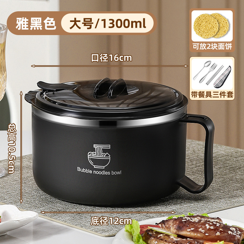 • 【食用304】优雅黑1300ml+餐具两件套