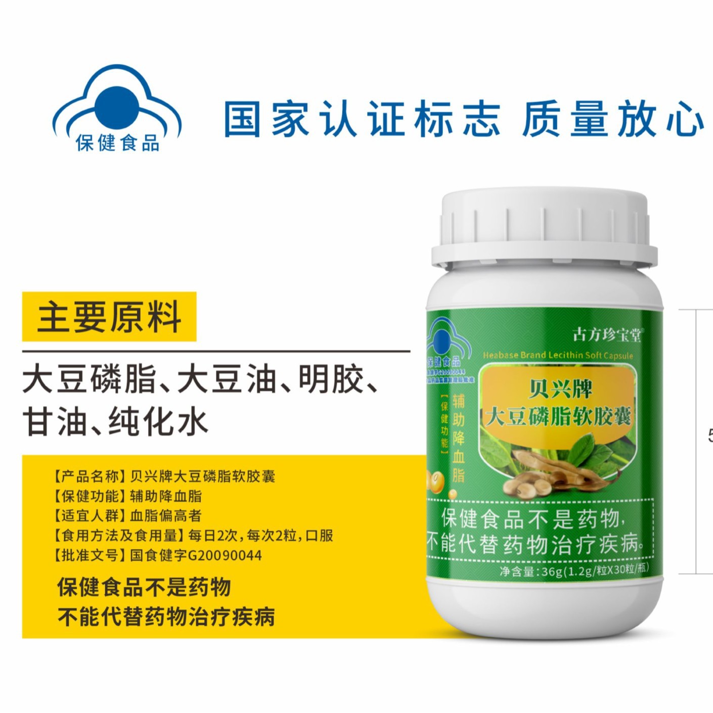 LA012定制/加工定制古 方珍宝堂贝兴牌大豆磷脂软胶囊血脂偏高者保健品胶囊