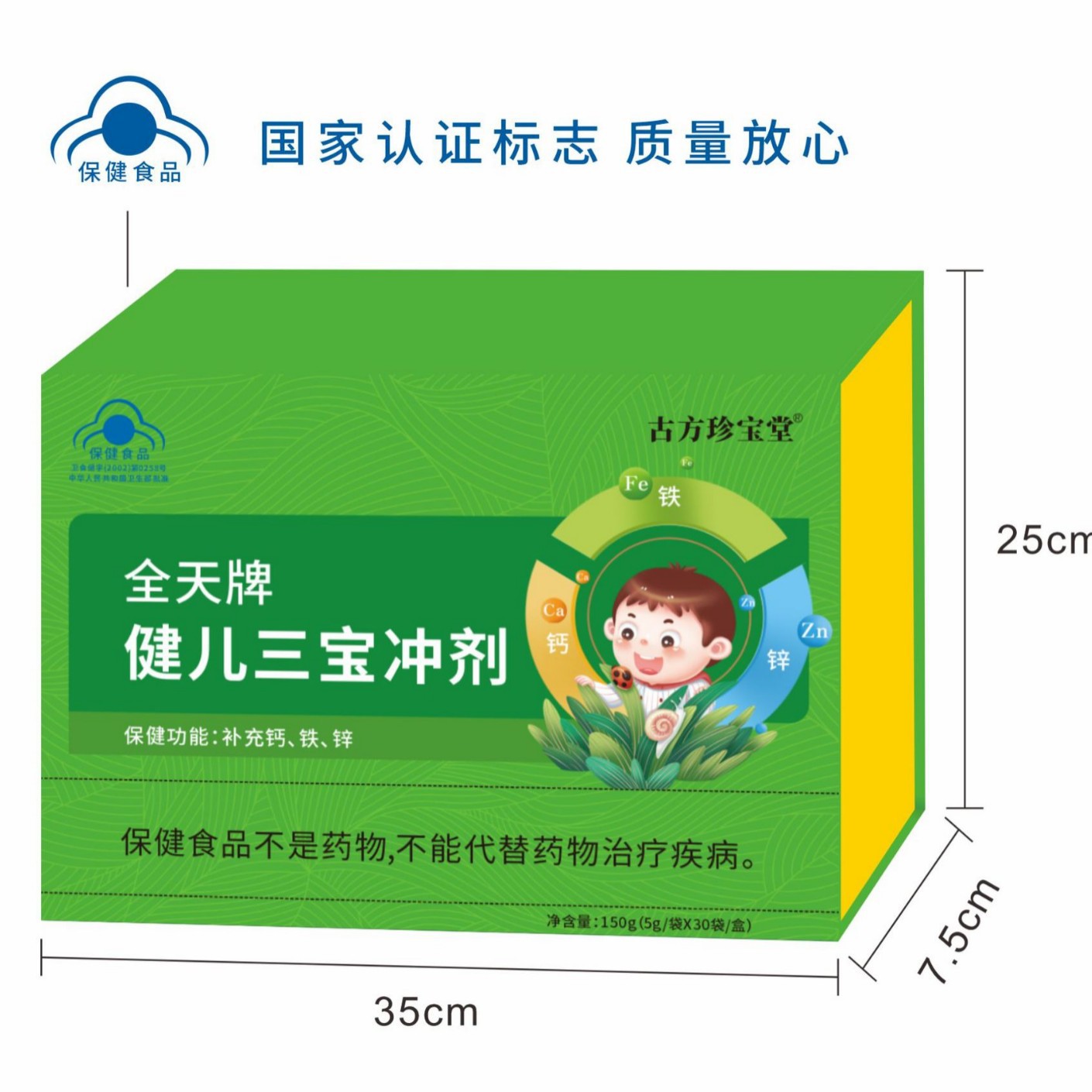 LA012定制/补充钙铁锌冲剂葡萄糖酸锌酸柠檬酸日落黄亚铁全天牌健儿三宝冲剂