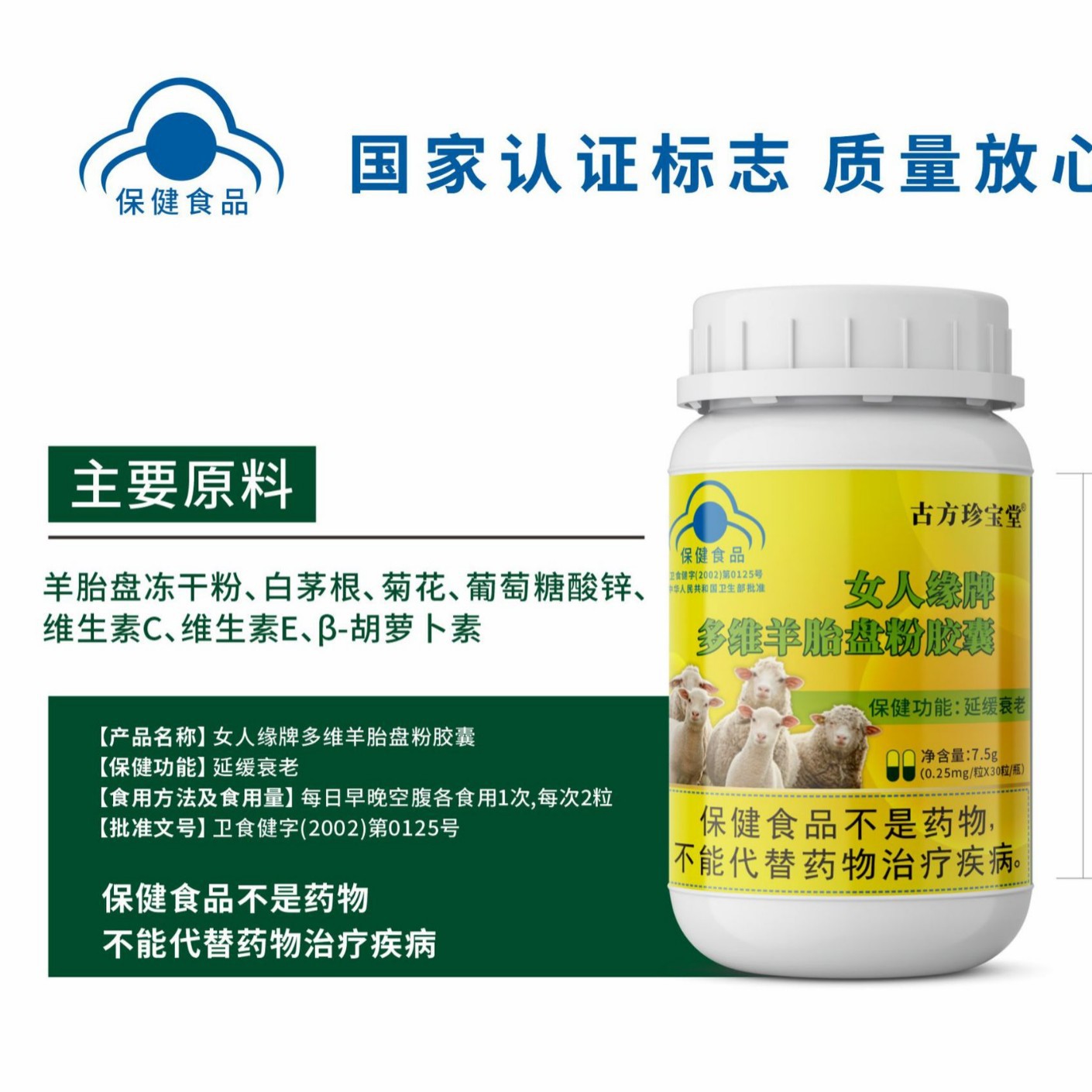 定制+女人缘牌多维羊胎盘粉胶囊