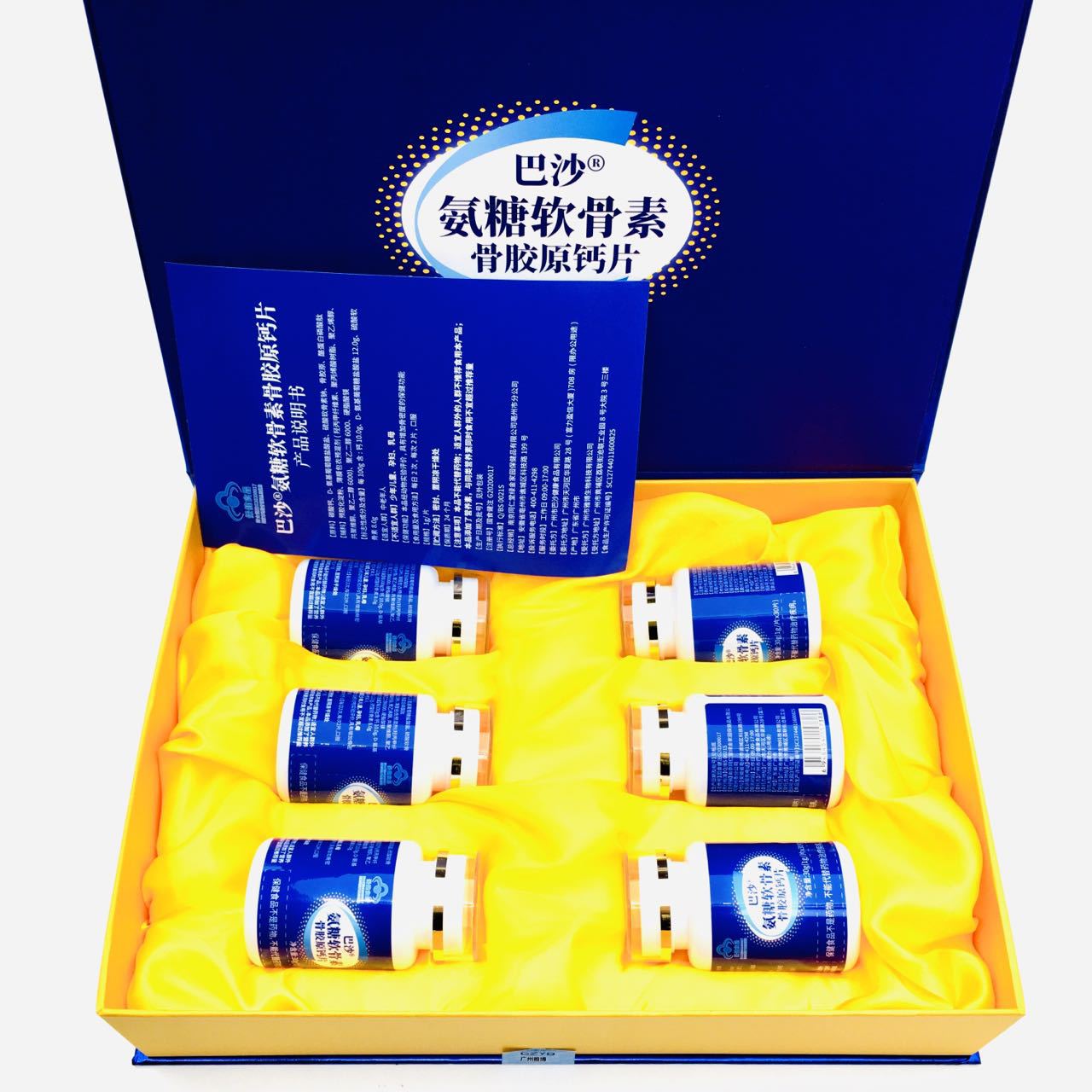 每100g含:钙16.84g、D-氨基葡萄糖盐酸盐18.1g、硫酸软骨素16.7g