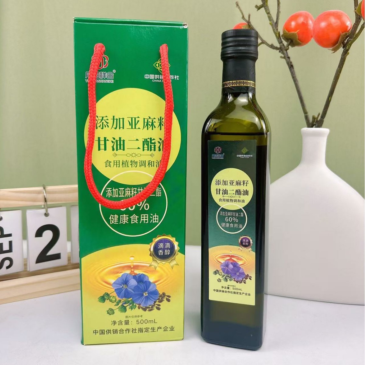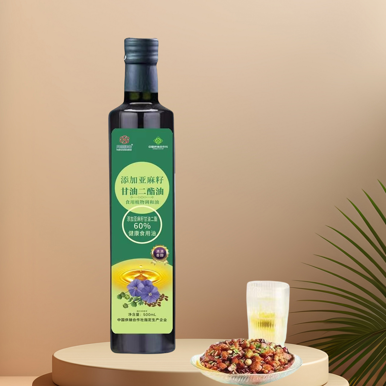 LA305可发样/工厂直销亚麻籽油甘油二酯油500ml玻璃瓶食用油会销团购点评礼