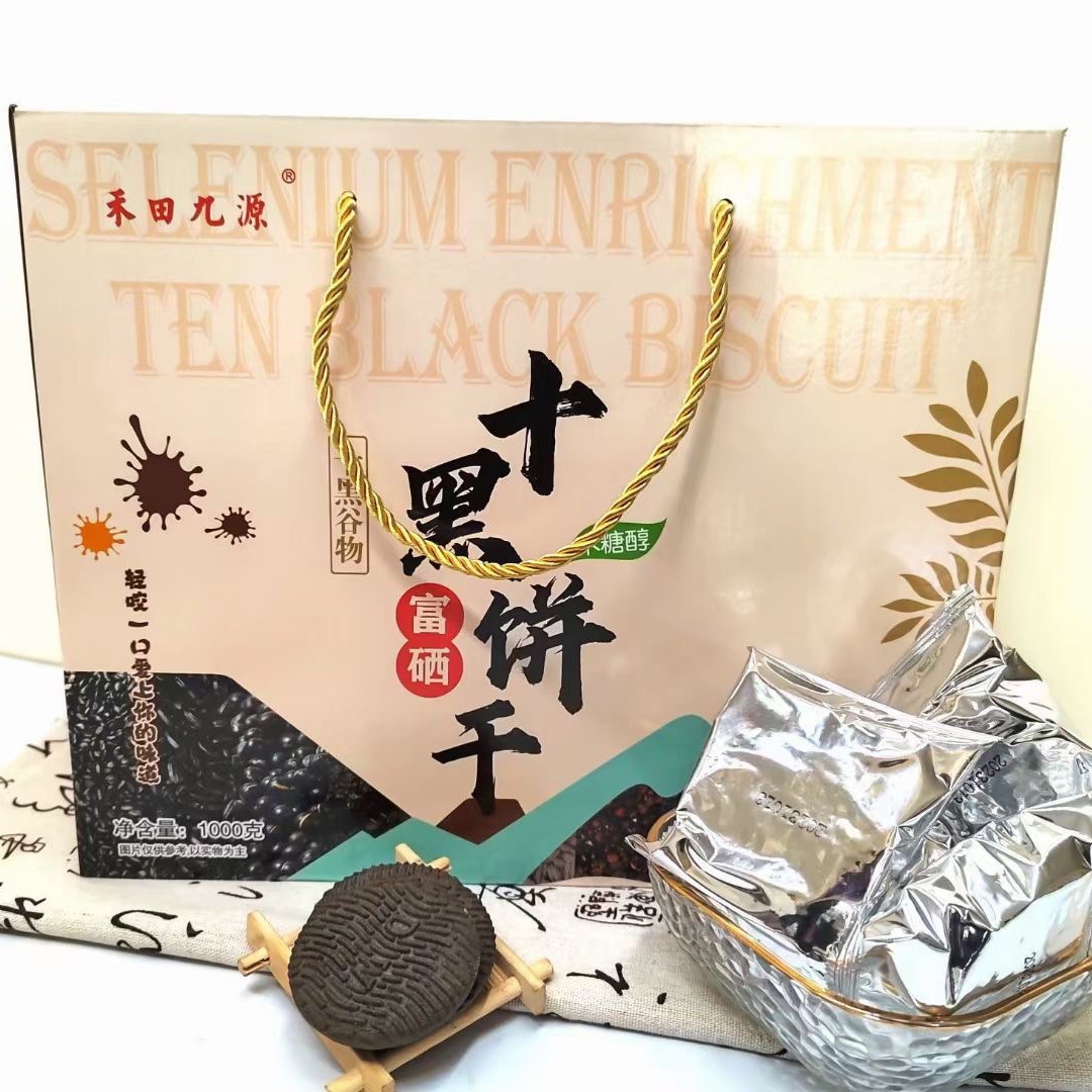 LA305可发样/源头厂家直销禾田九源十黑桃酥十黑饼干1千克礼盒装休闲零食批发