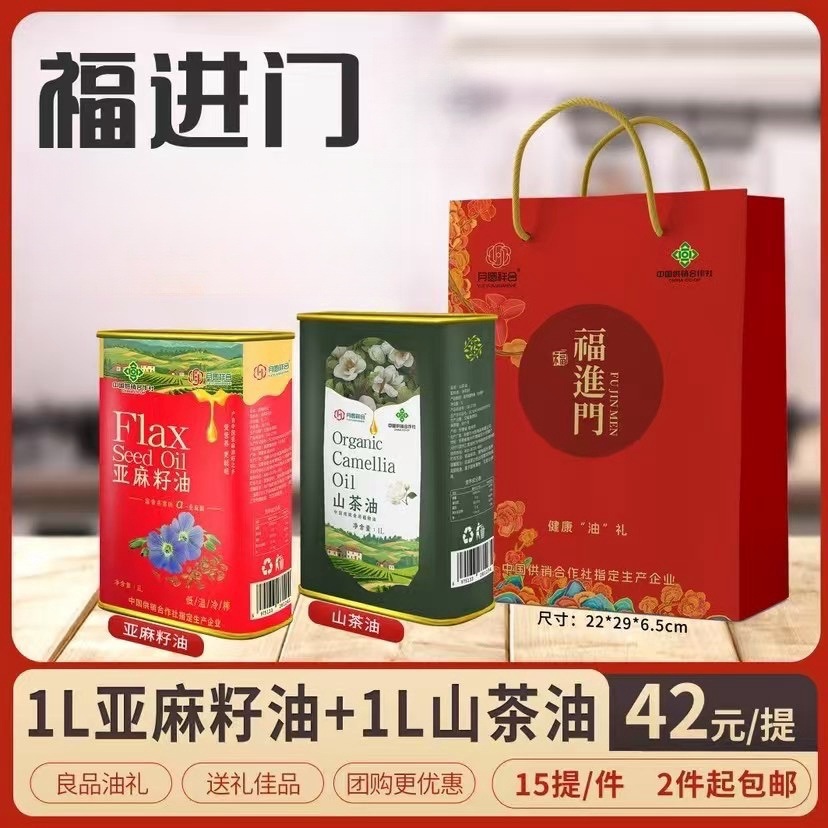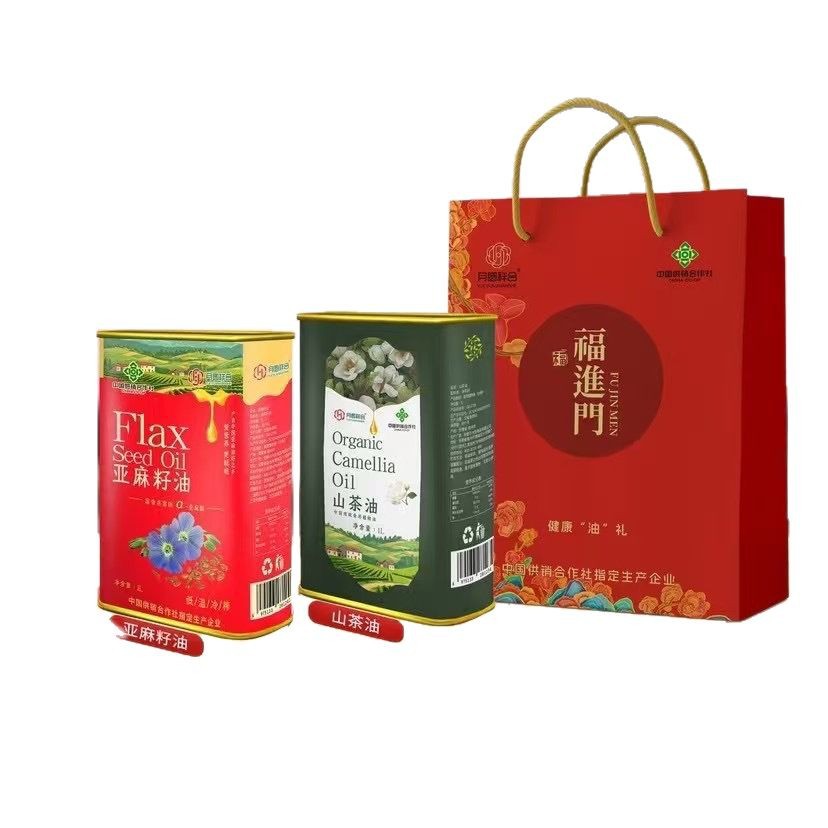 LA305可发样/厂家批发月圆祥合亚麻籽油山茶油铁盒装油礼会销团购礼品