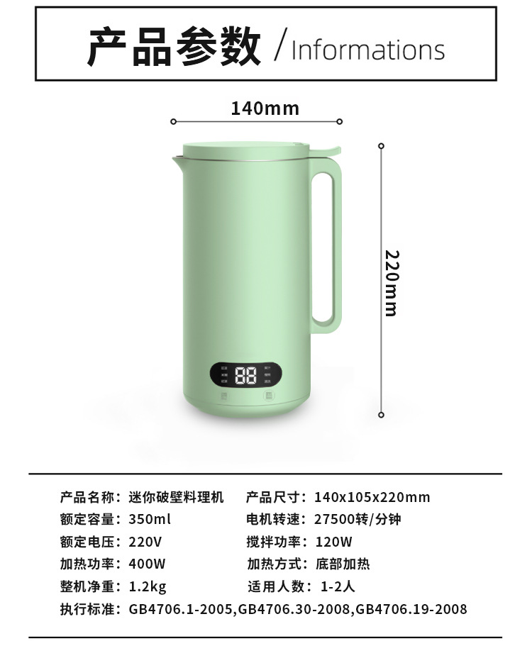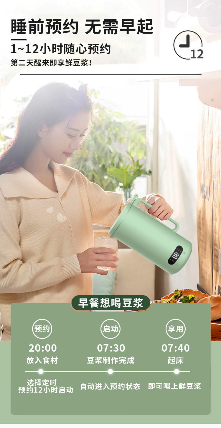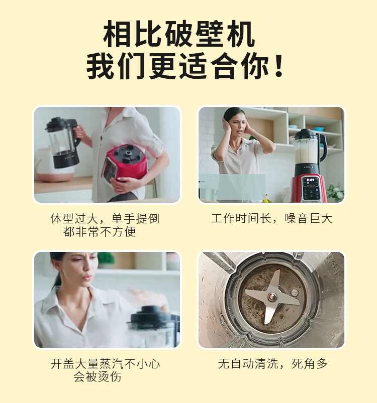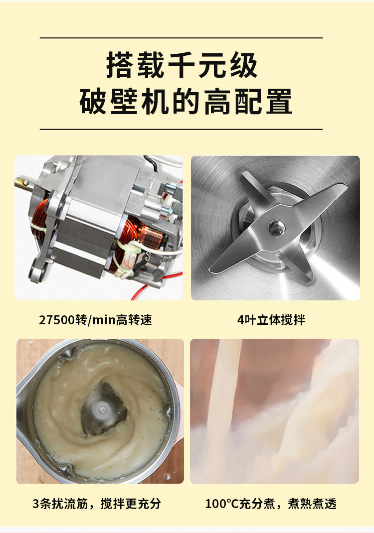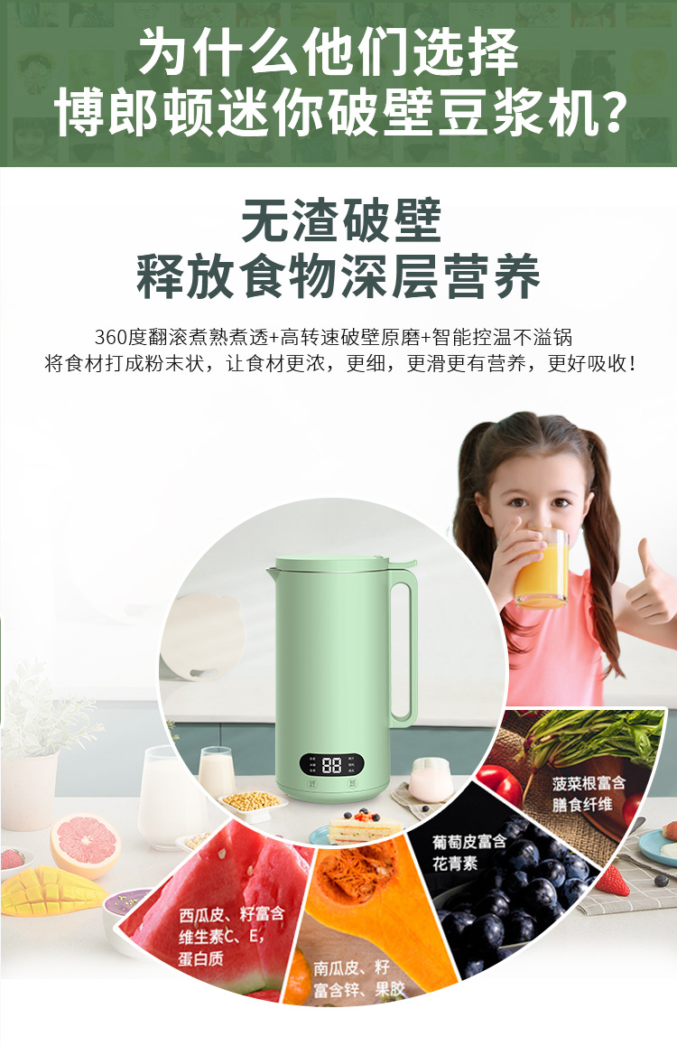 LA017可发样豆浆机家用小型破壁机迷你免滤多功能预约加热便携榨汁辅食料理机