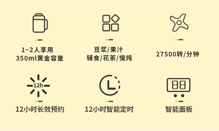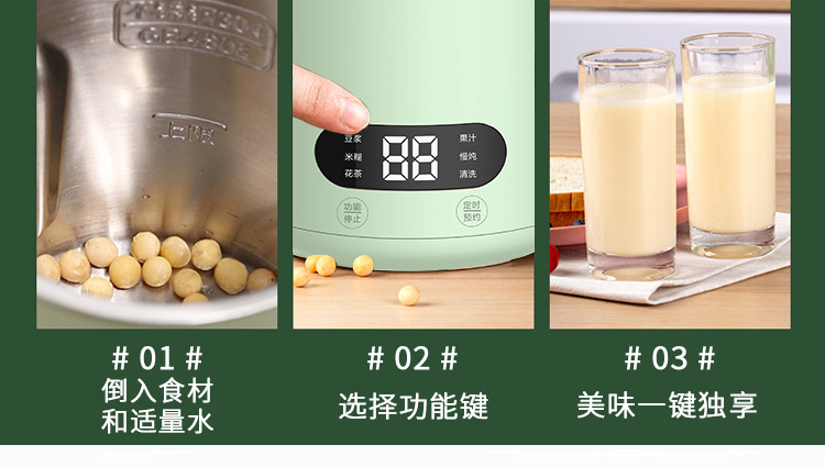 • 豆浆机功能: 果蔬,干豆,湿豆,米糊,五谷,玉米汁