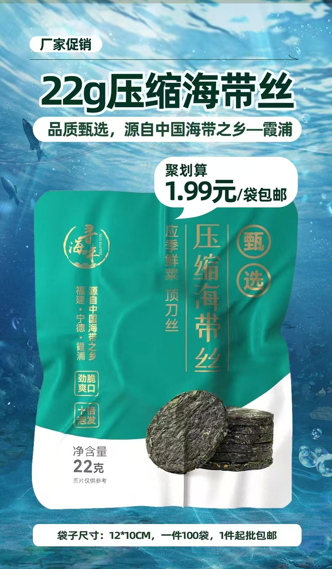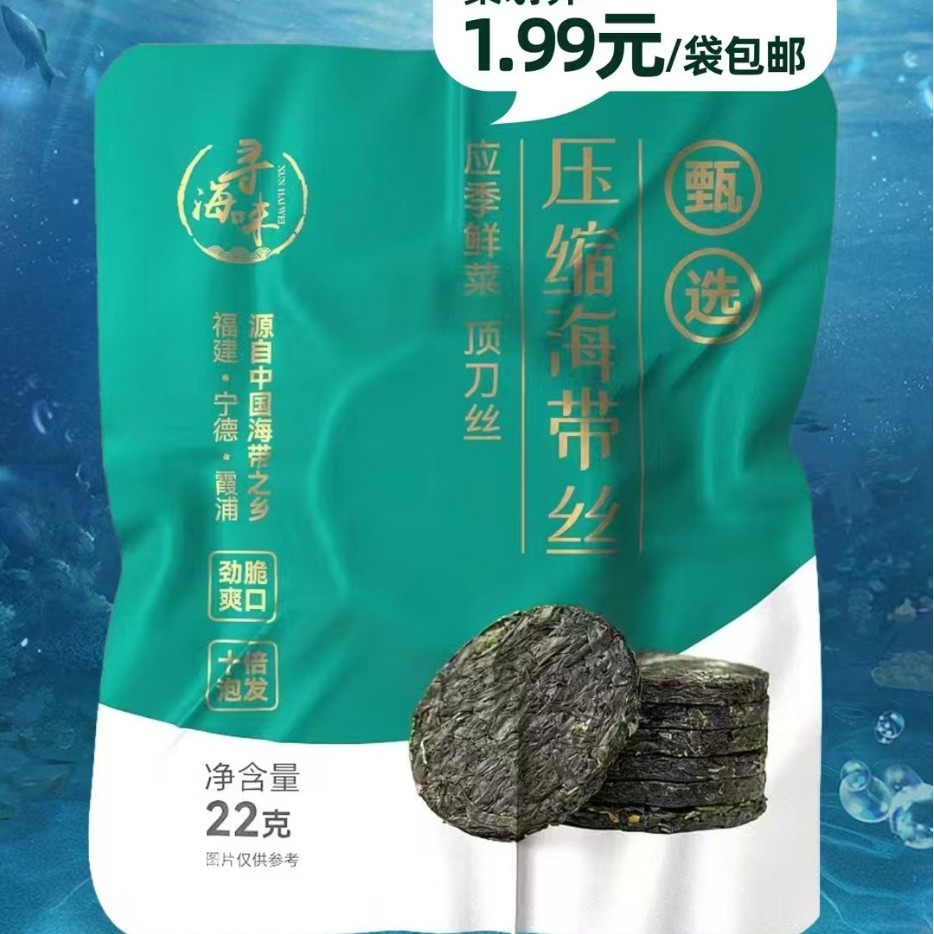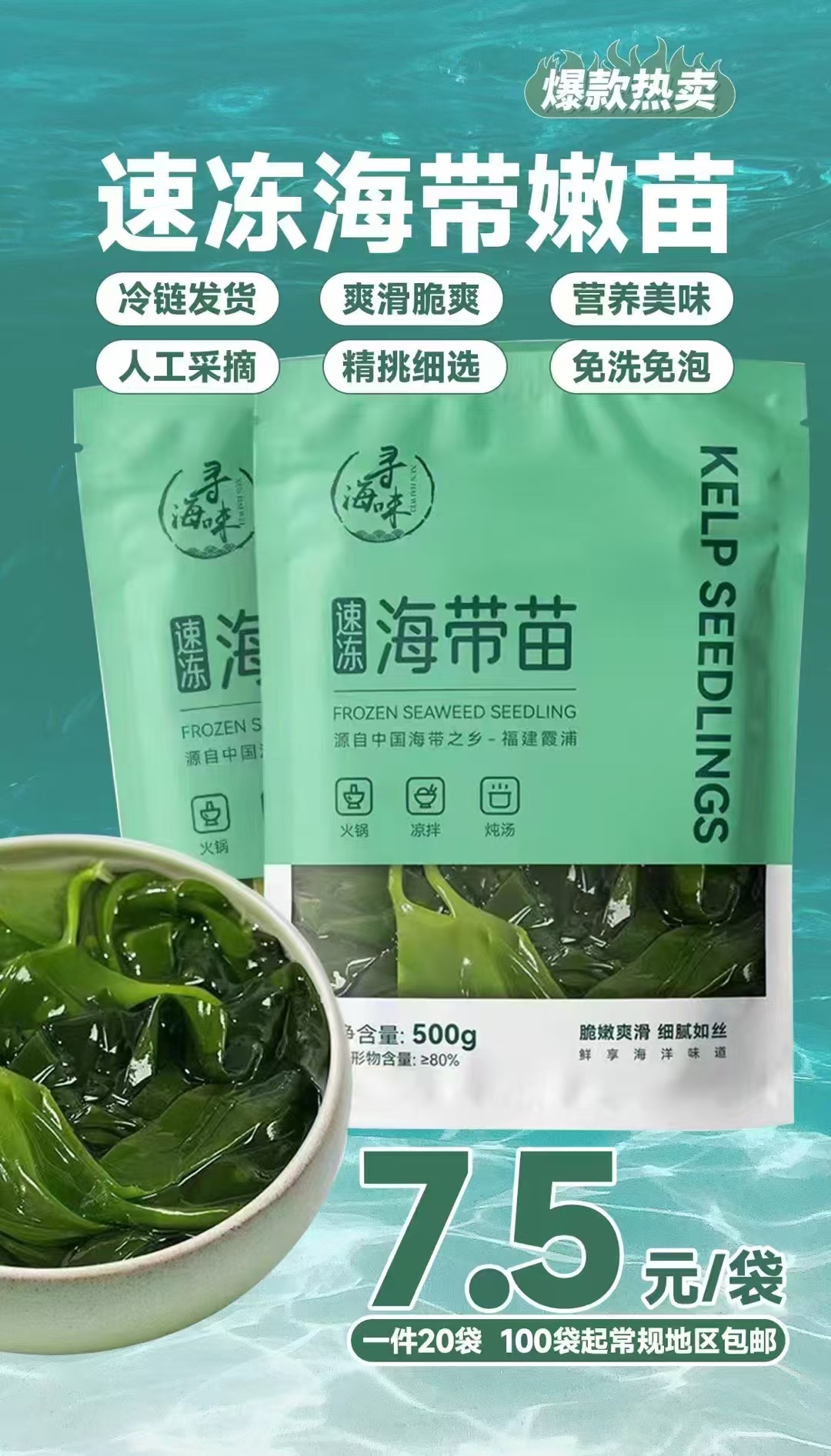 LA305可发样/源头厂家霞浦海带泡发免洗圆饼干海带海带苗速冻凉拌团购锁客礼品