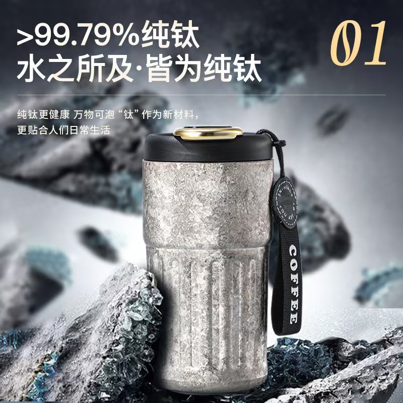 LA029可发样纯钛保温杯八角数显咖啡杯随行便携提绳钛杯高颜值车载高档礼品杯