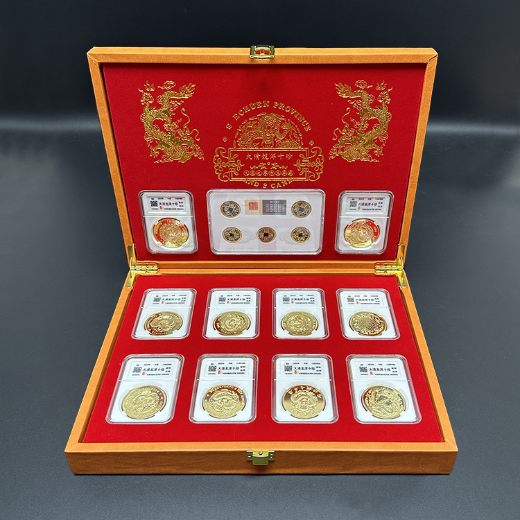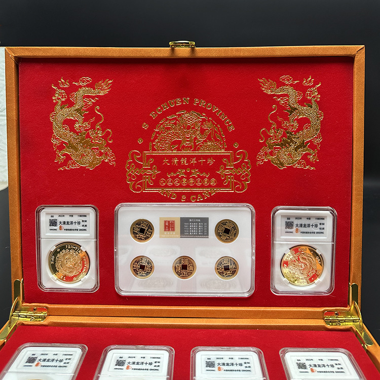 LA307可发样/新品收藏大清龙洋十珍带五帝钱金币纪念章套盒会销直播爆品可代发