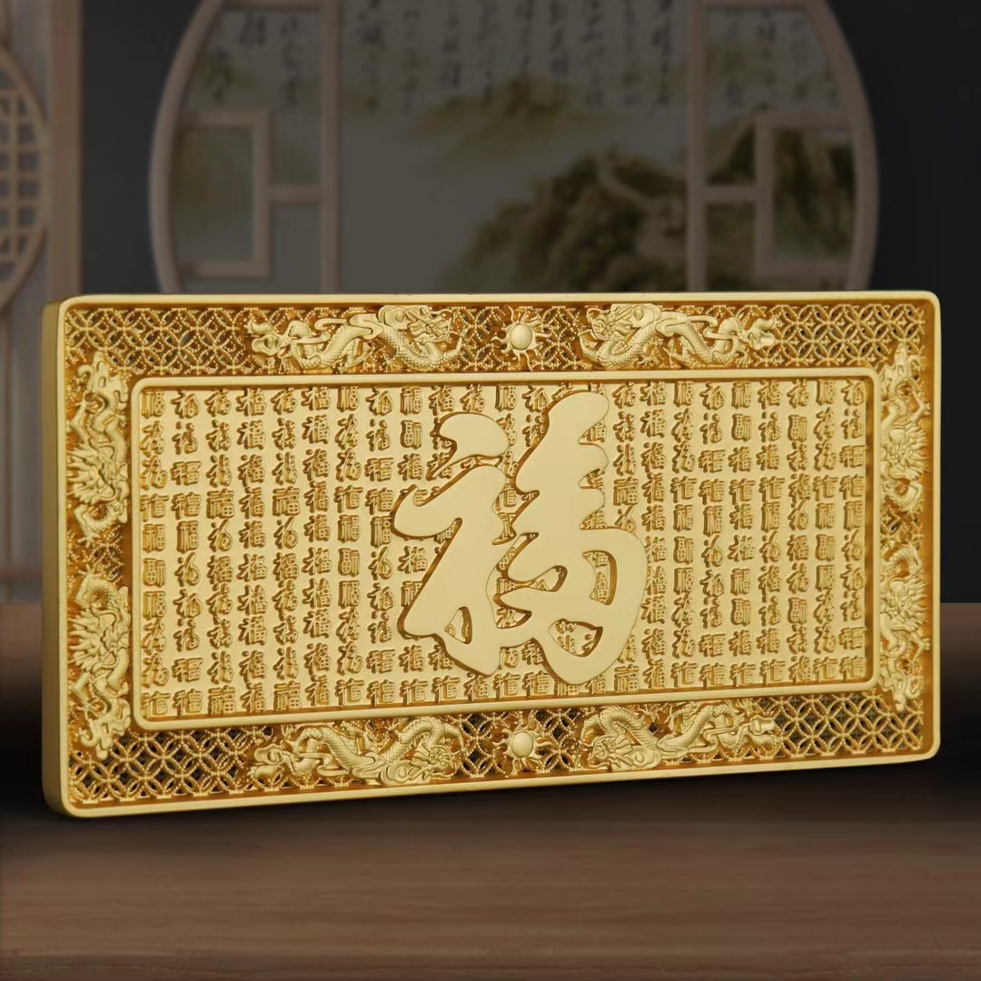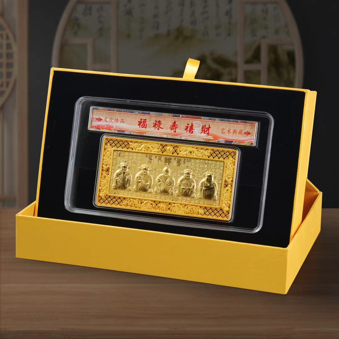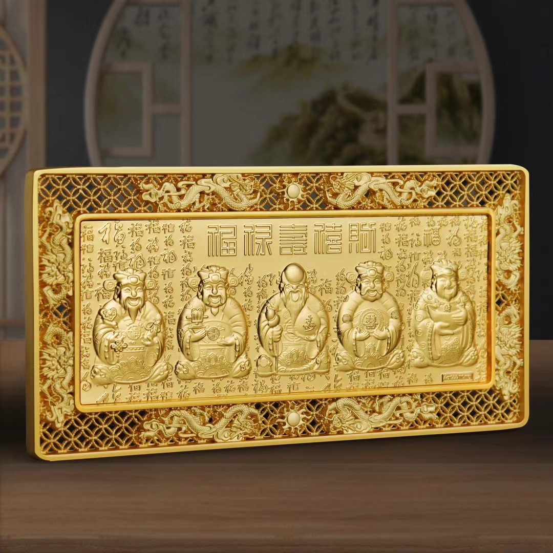 LA307可发样/新品五福临门镂空花丝金砖高端招财摆件会销礼品直播产品支持代发