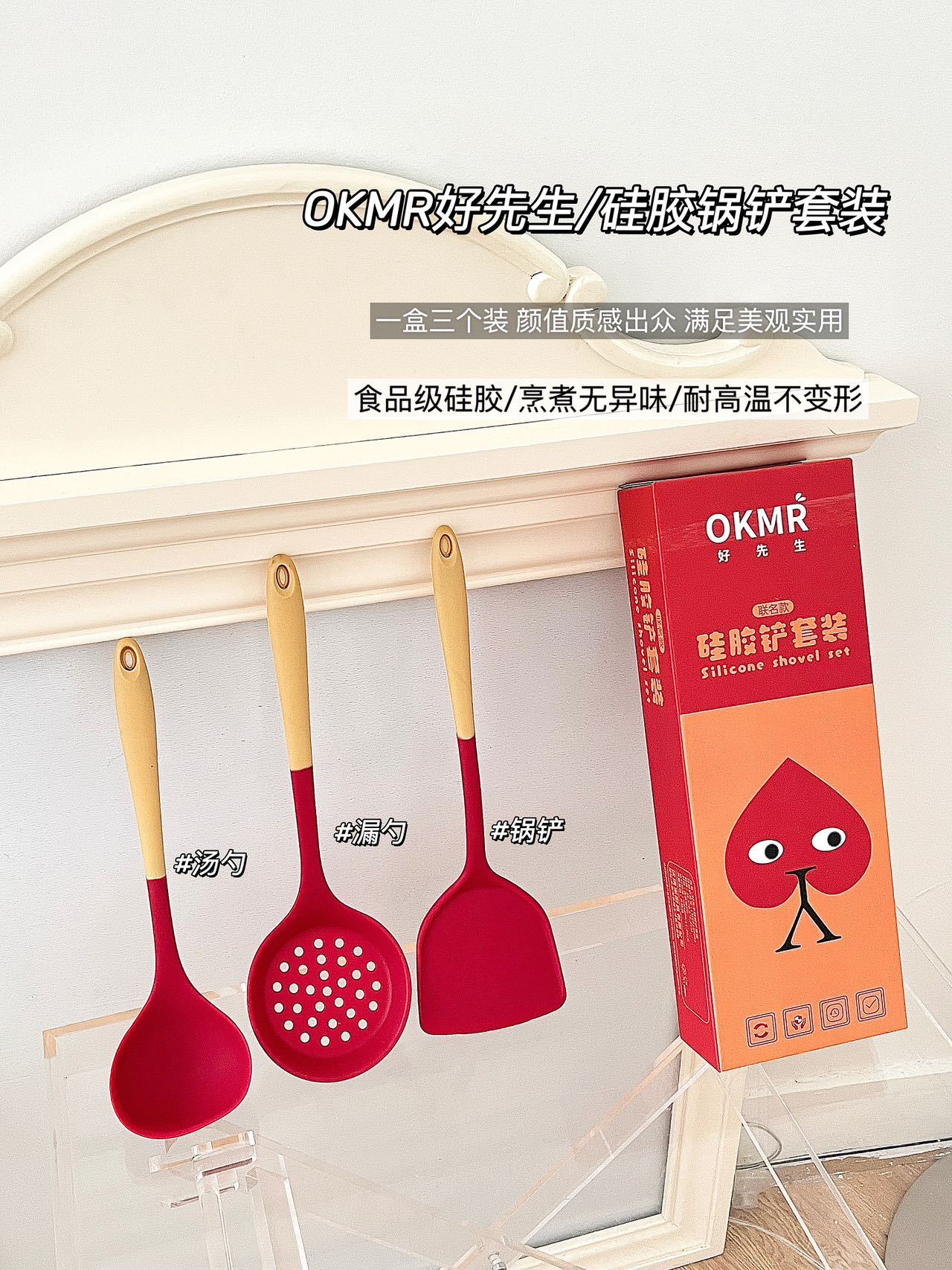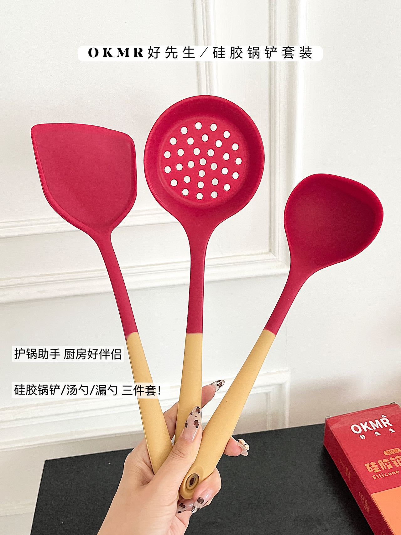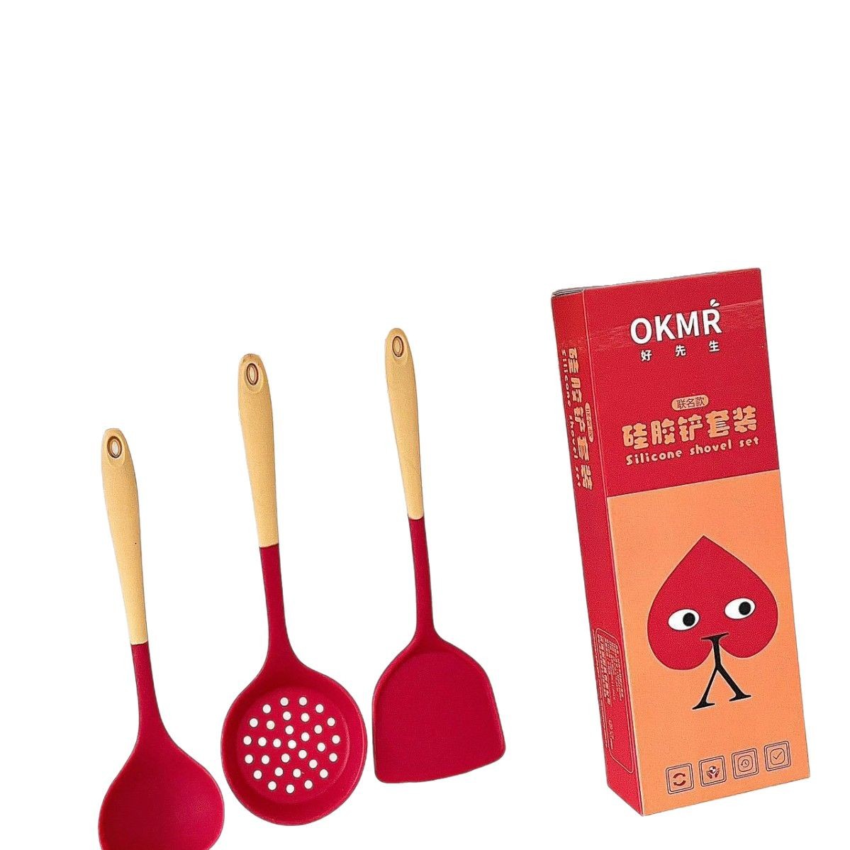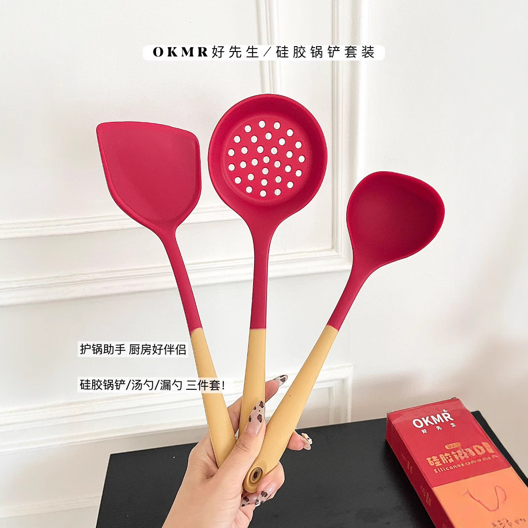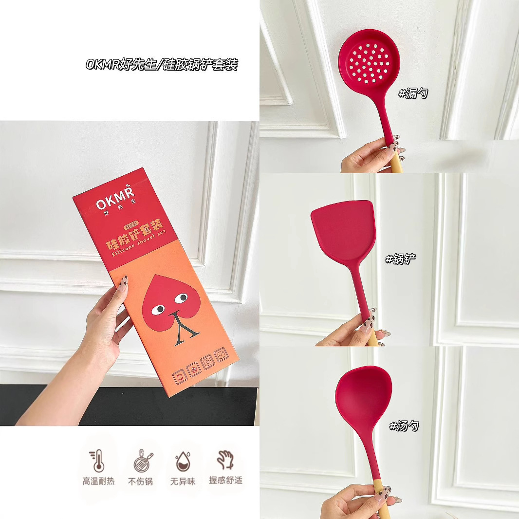 LA029可发样工厂现货硅胶锅铲耐高温硅胶厨具套装不粘锅铲子硅胶汤勺礼盒包装