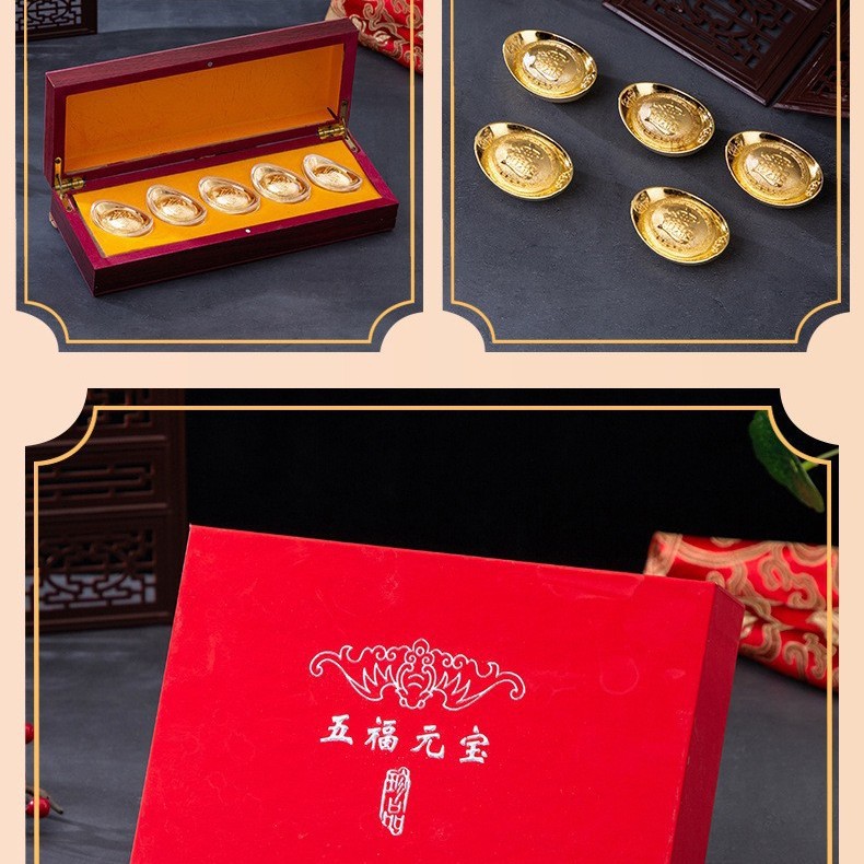 LA307可发样/五福元宝金银套件礼盒套装福宝献礼家庭摆件春节贺岁开业招财礼品