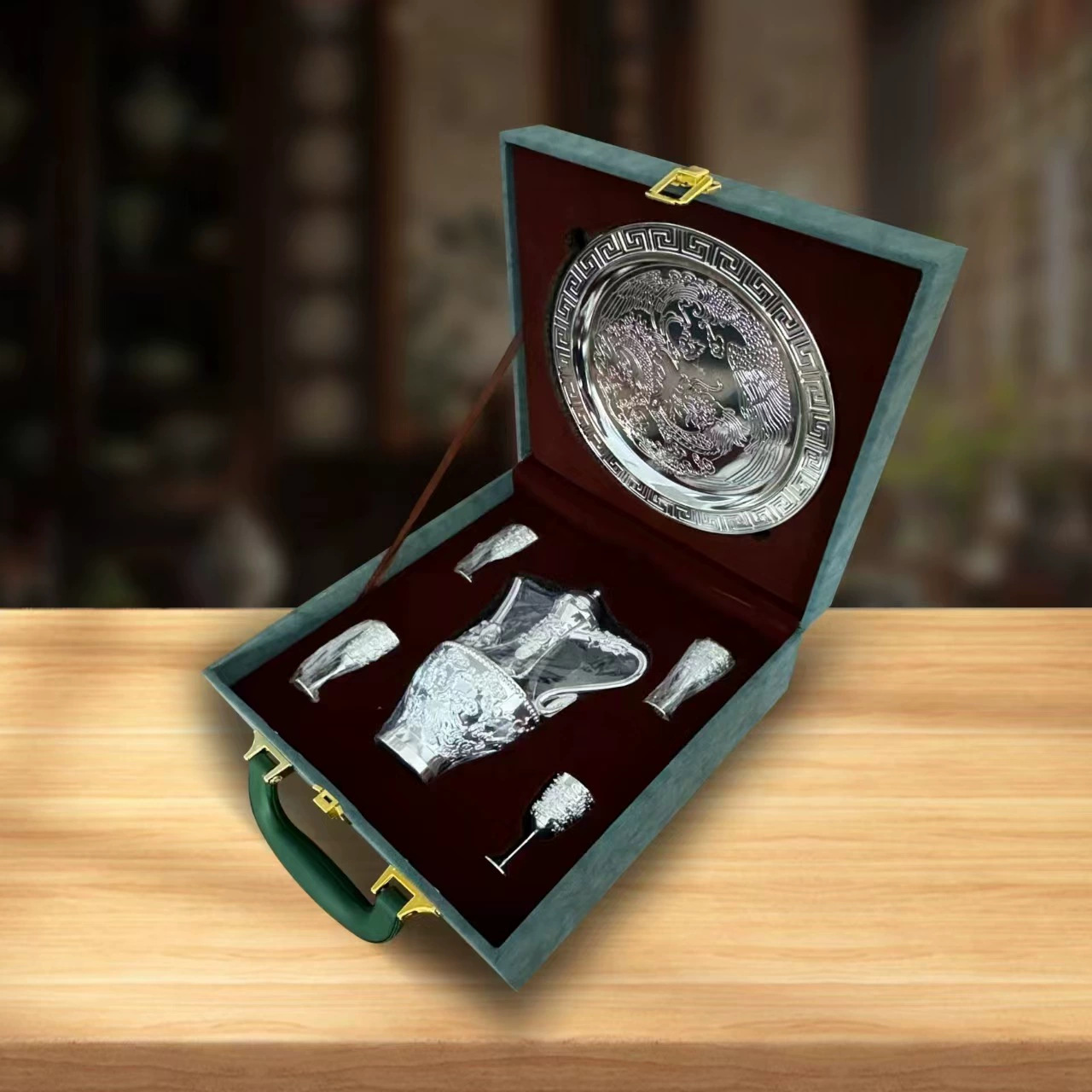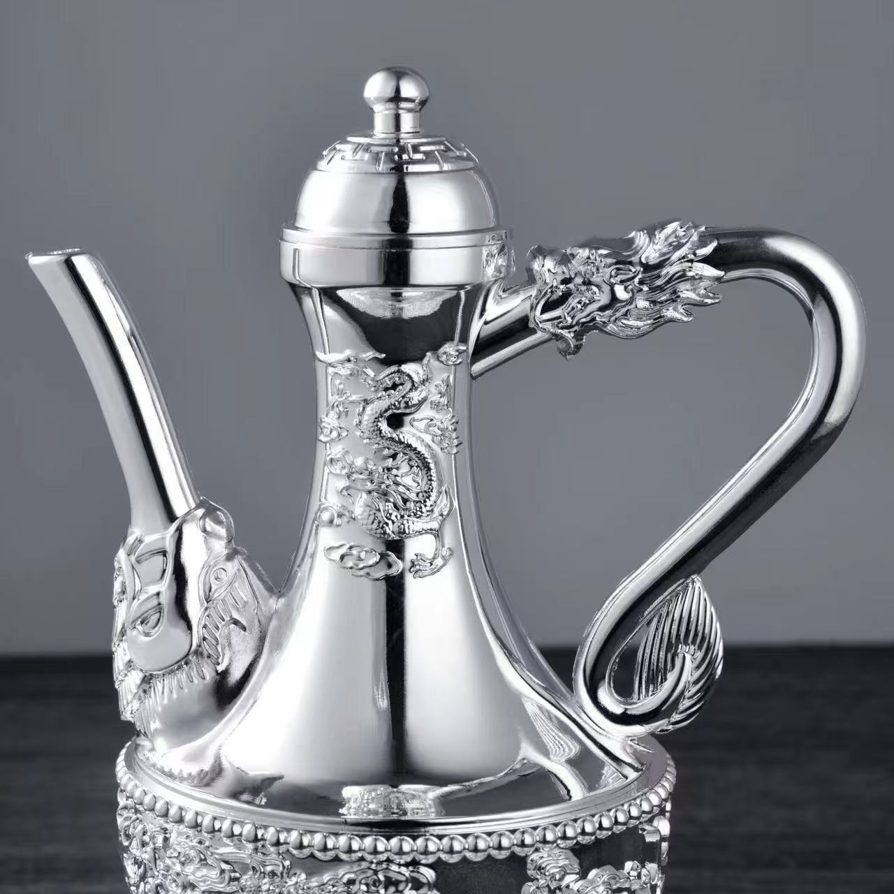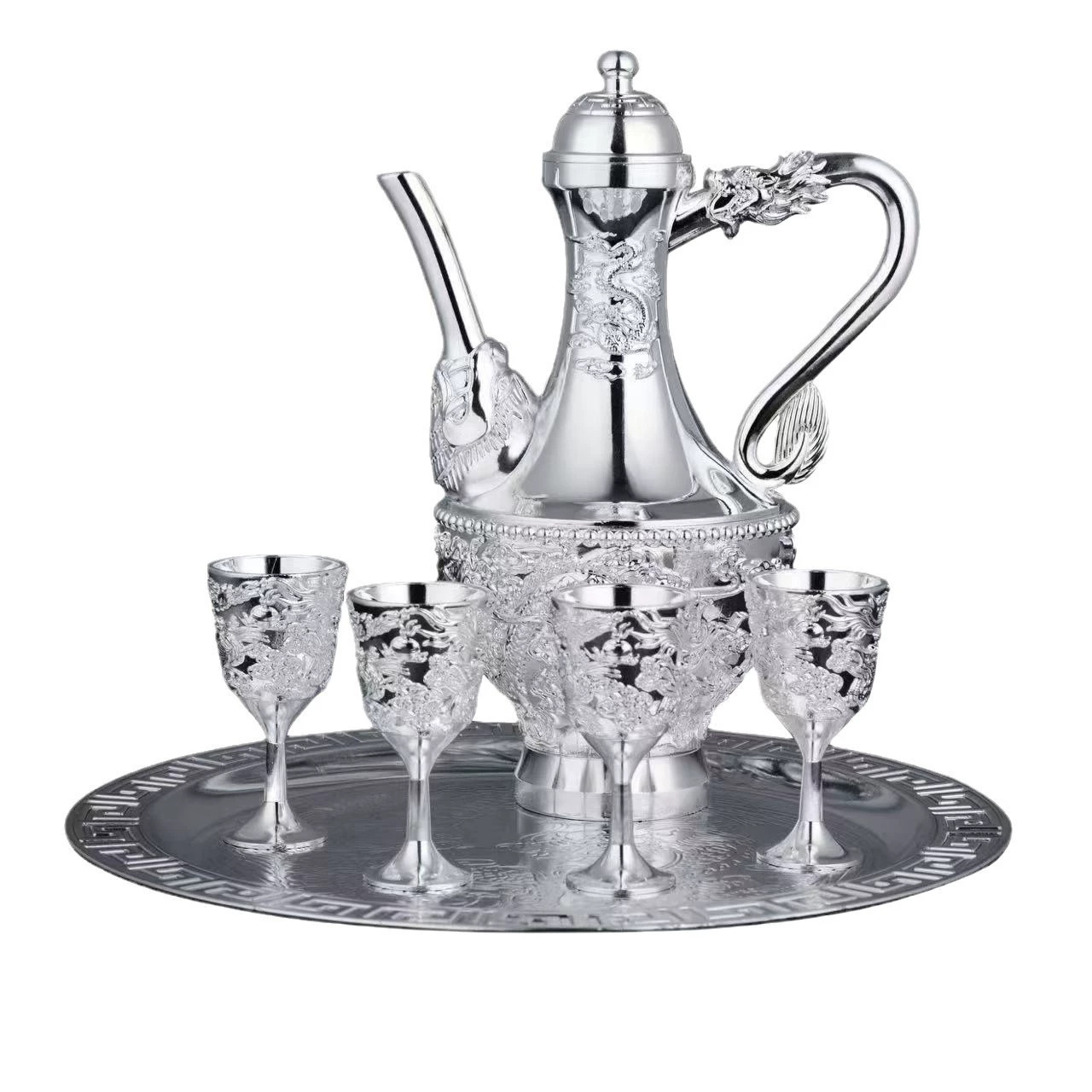 LA307可发样/龙凤呈祥银酒具六件套装轻奢高档托盘酒壶酒杯送礼摆件 厂家批发