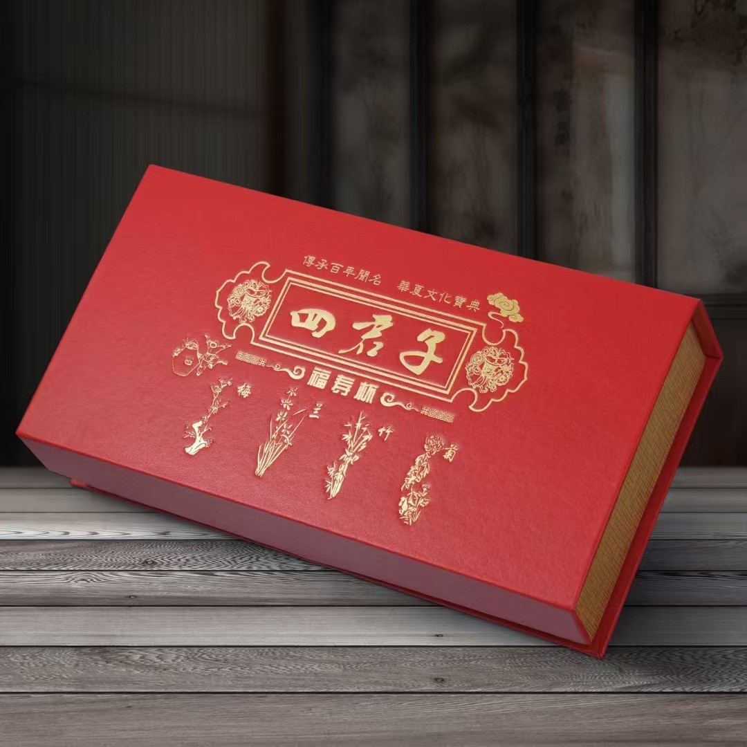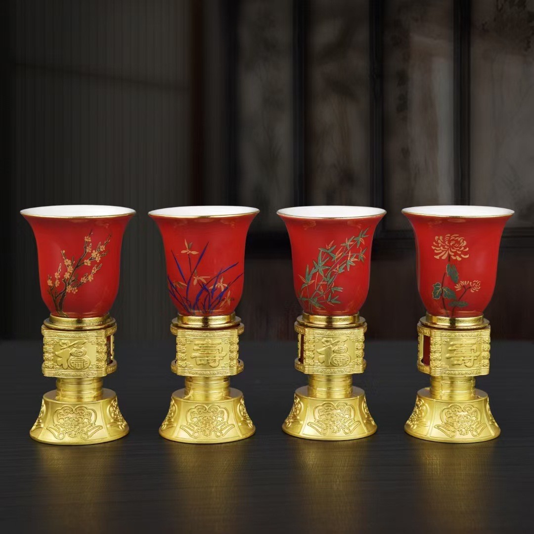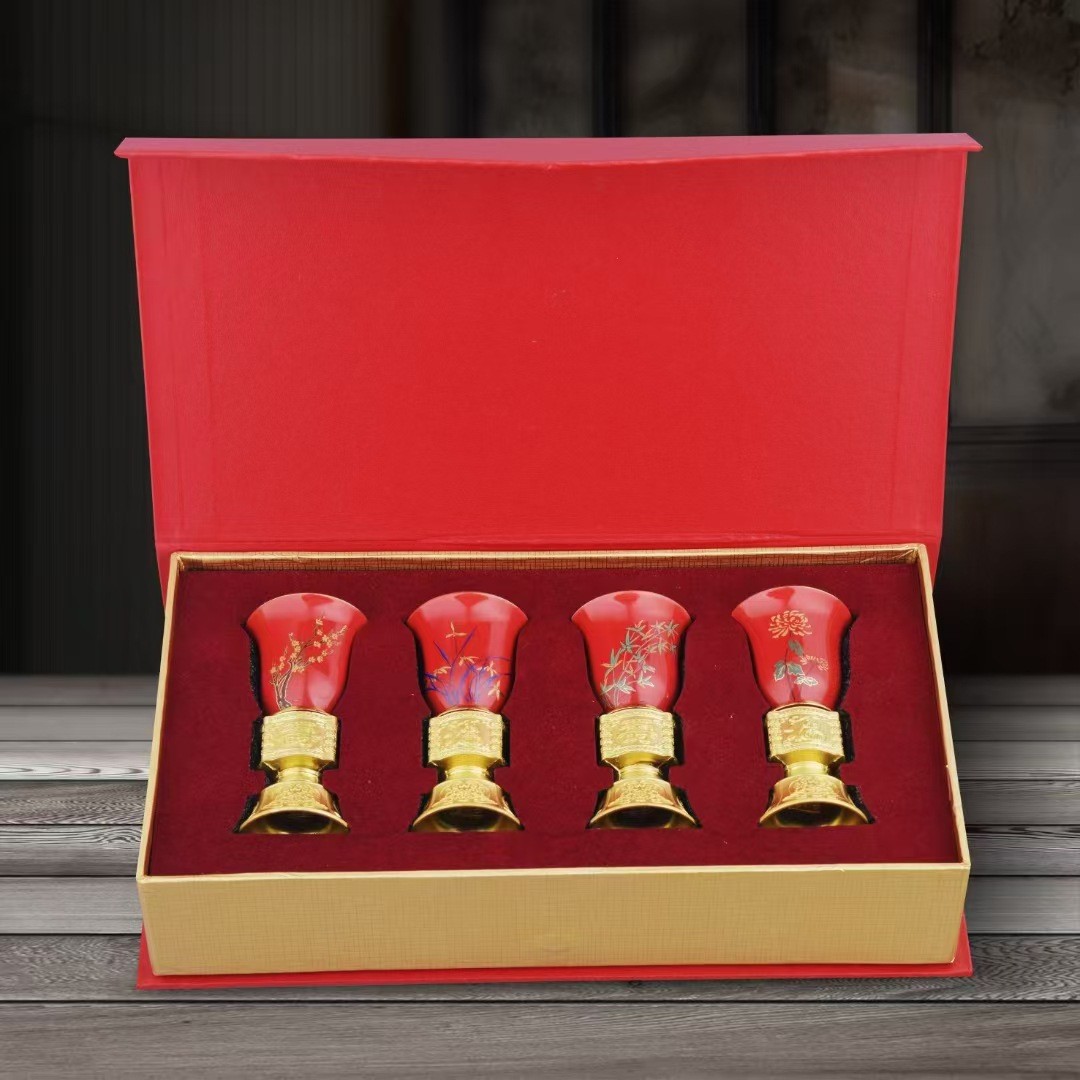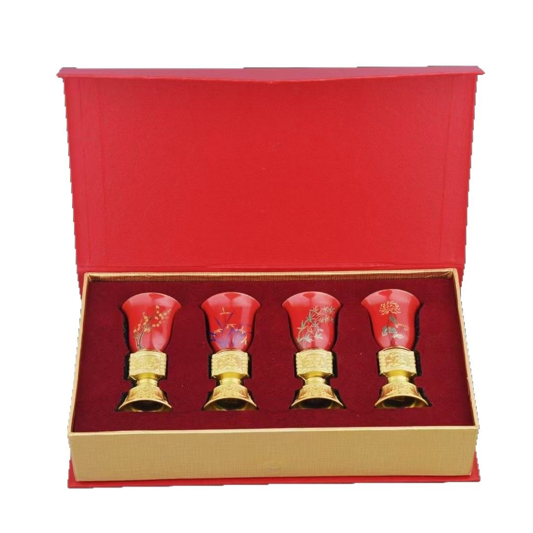 LA307可发样/新品陶瓷白酒杯四君子酒具小酒杯大红色婚庆敬酒喜庆支持一件代发