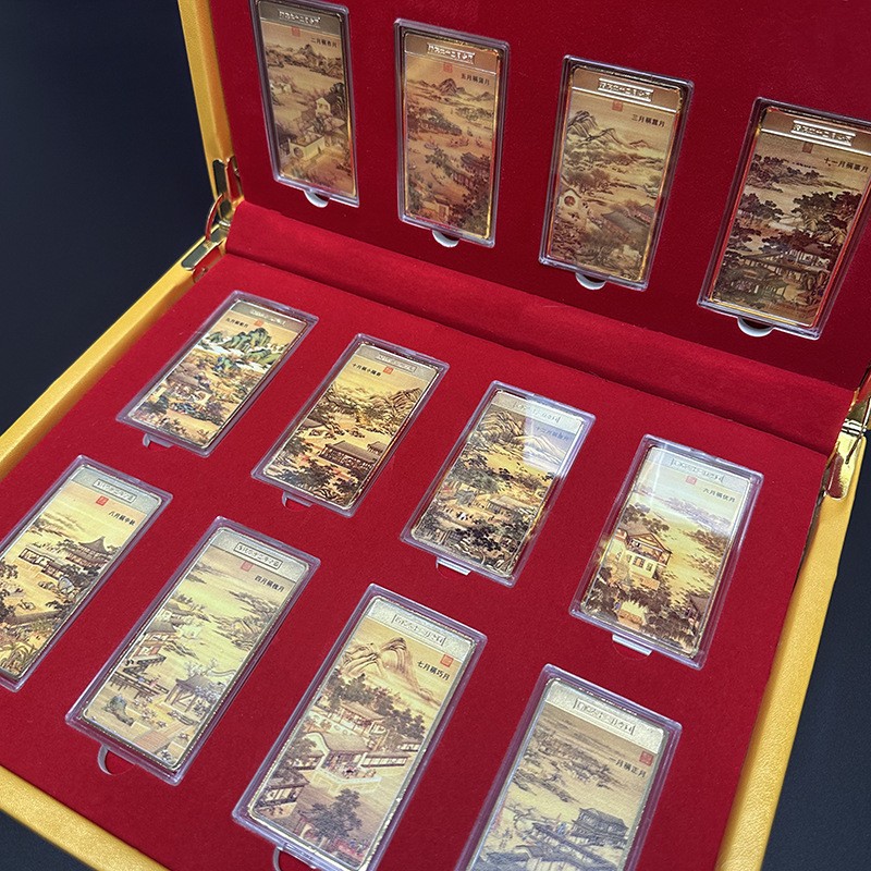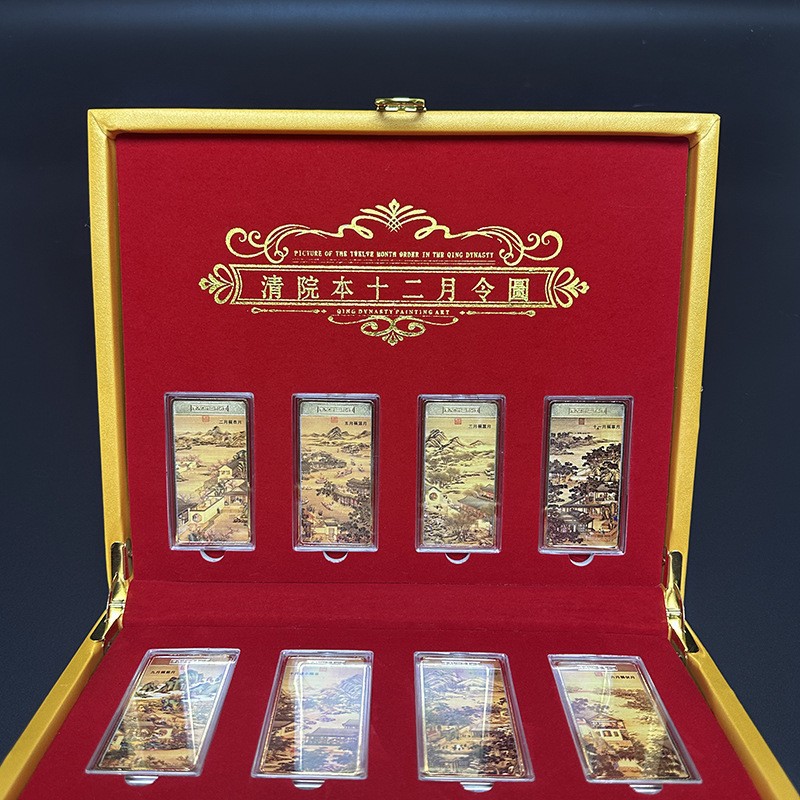 LA307可发样/文创台北故宫藏品清院本十二月令图金砖镀金纪念章仿古名画纪念币