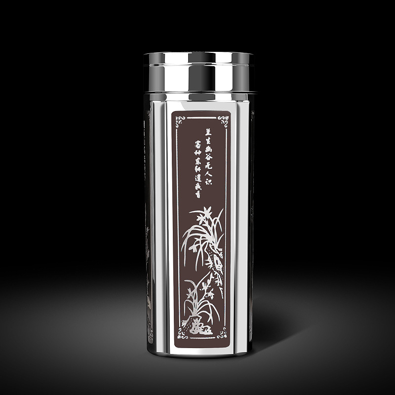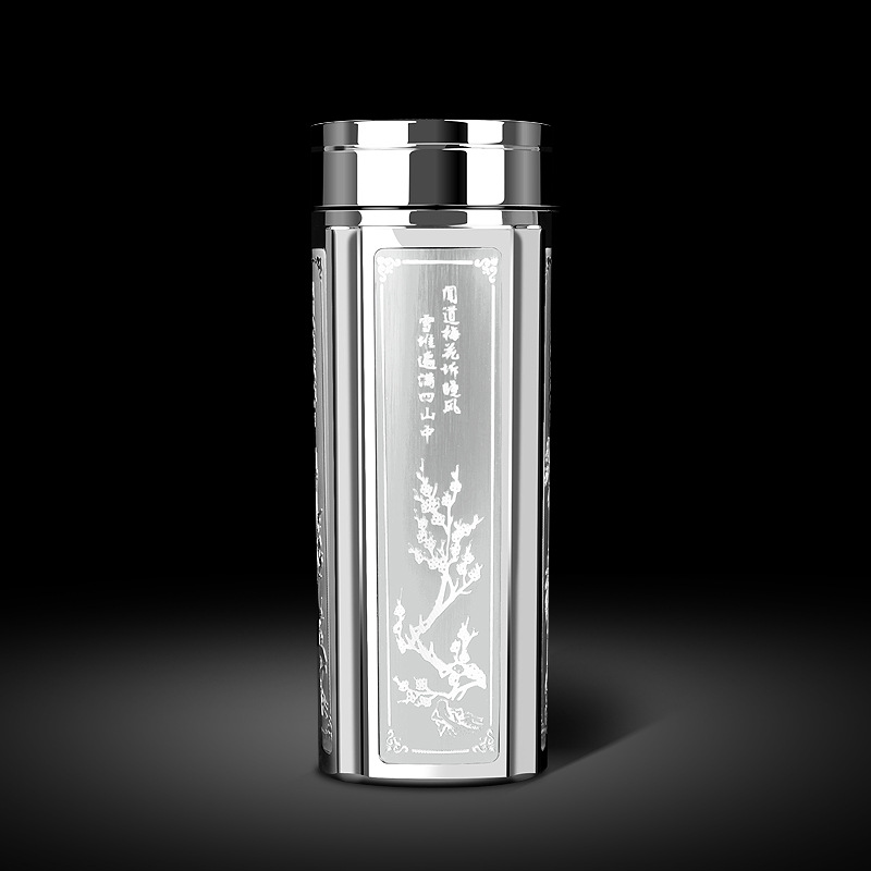 LA083可发样/批发梅兰竹菊四方纯银杯子纯银999内胆创意银杯子鎏银浮雕银水杯