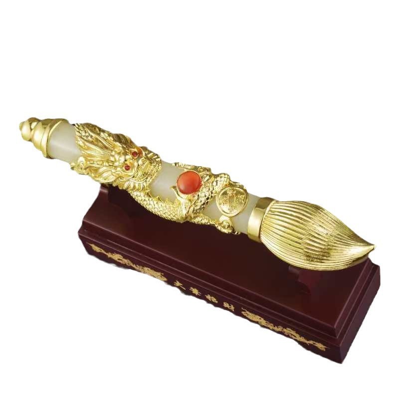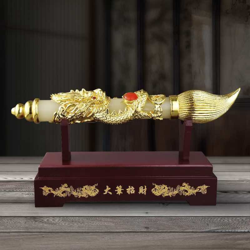 LA307可发样/新品大笔招财摆件盘龙毛笔文昌笔镶龙珠家居装饰工艺品文房摆设